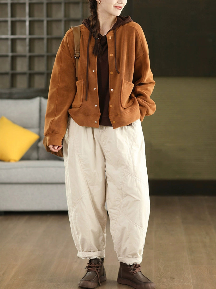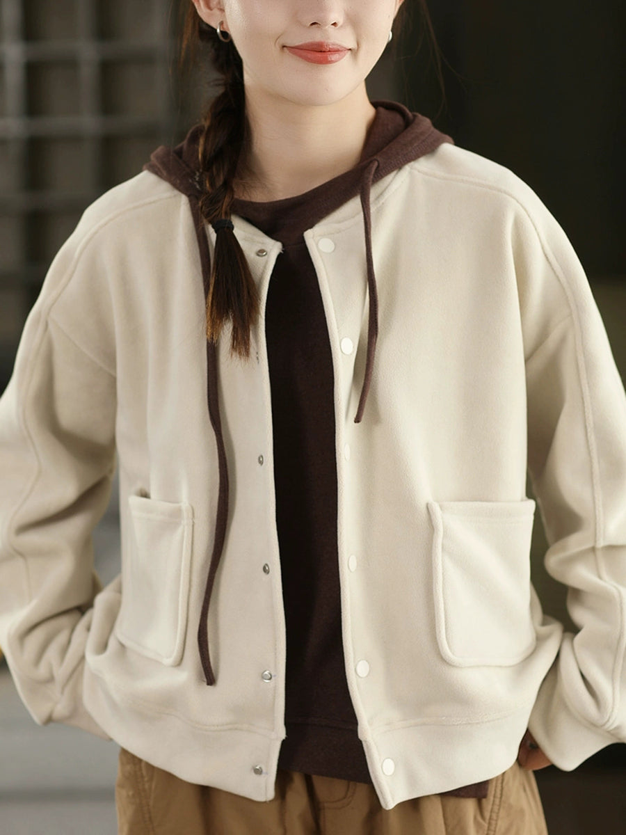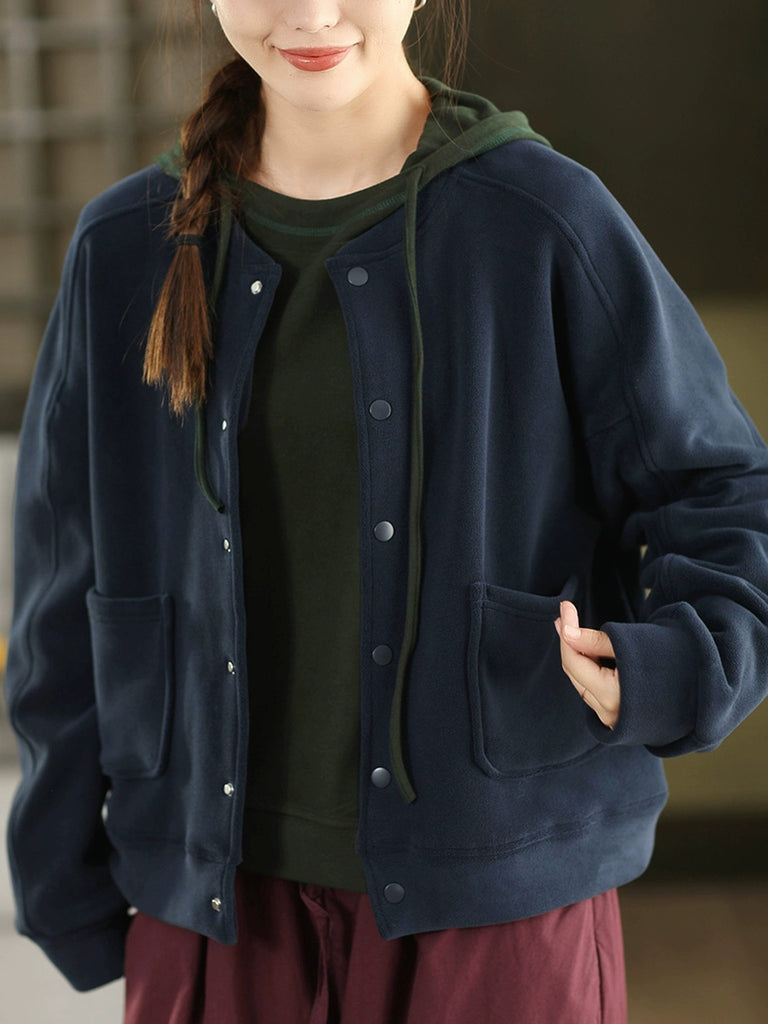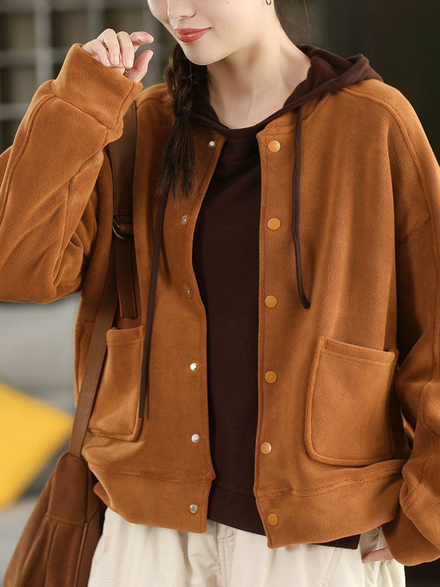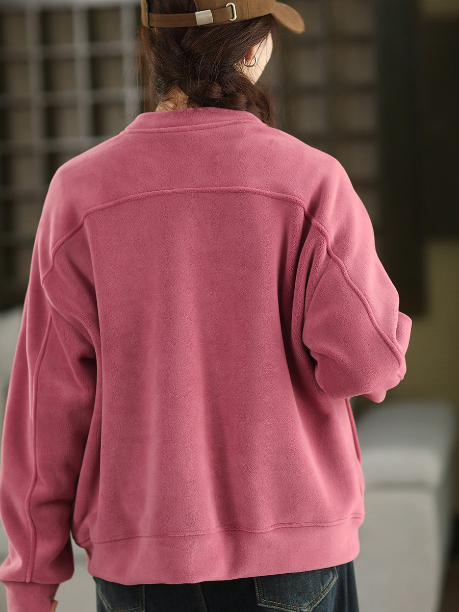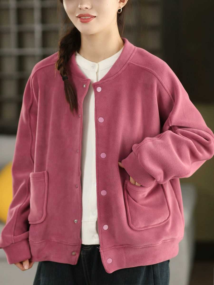 Kvinnors vinter casual fleecejacka med o-ringning i ren färg