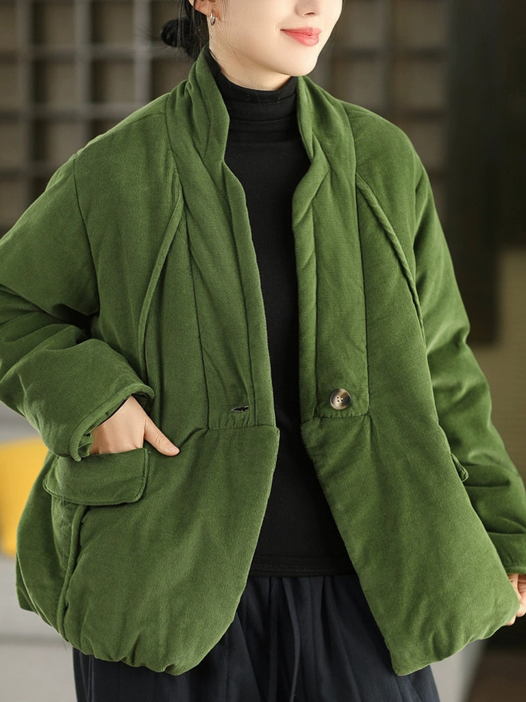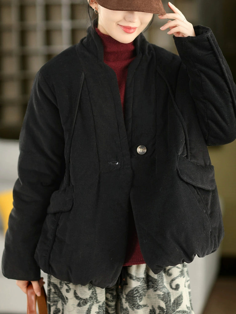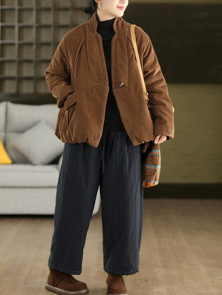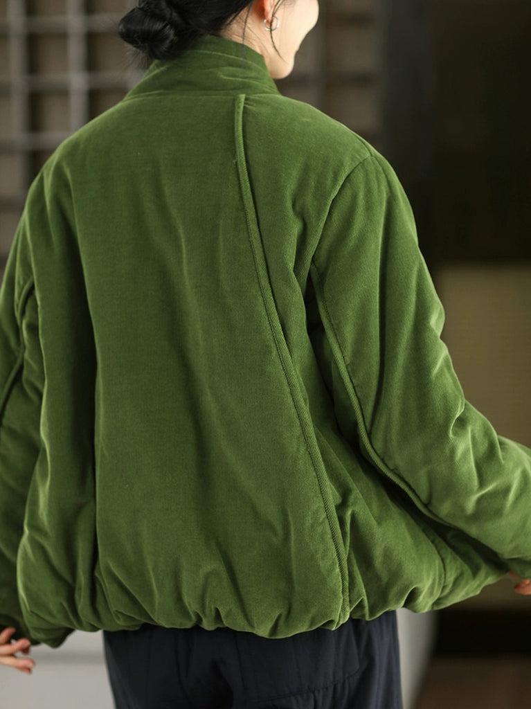 Kvinnors vinter retro ren färg vadderad standkrage kappa