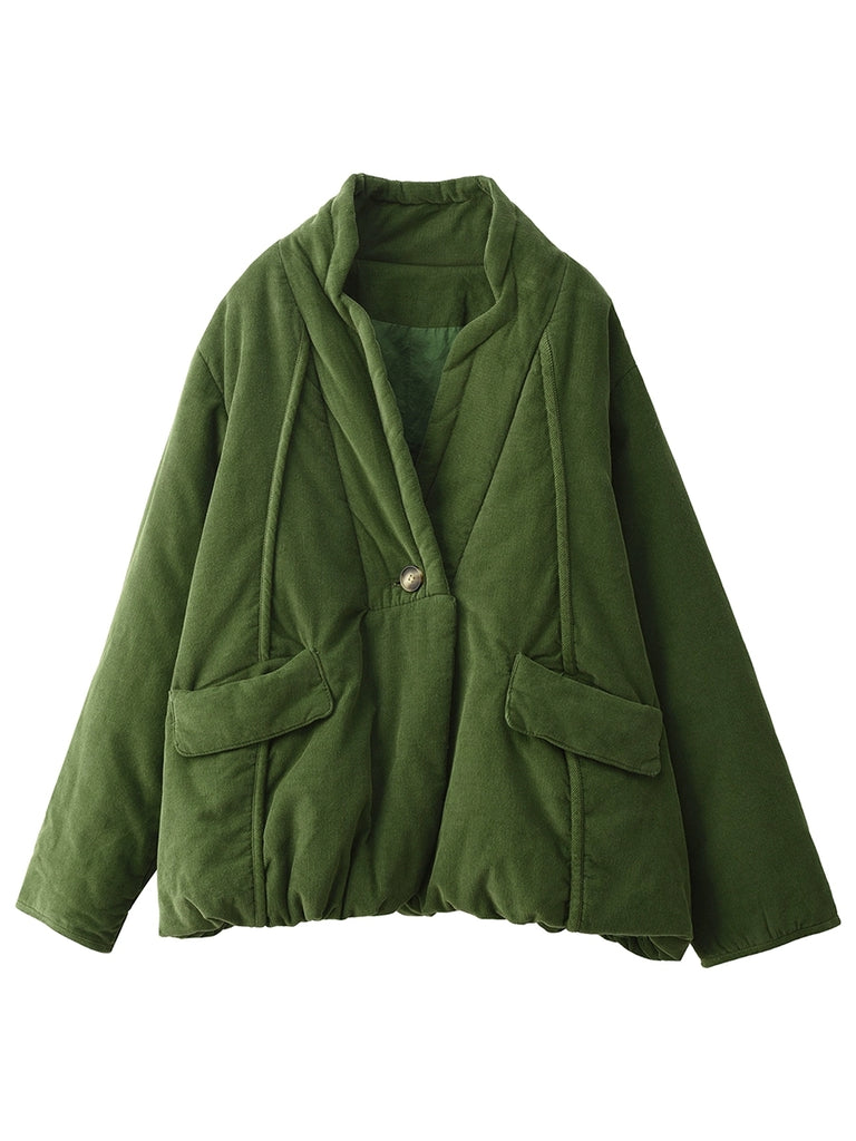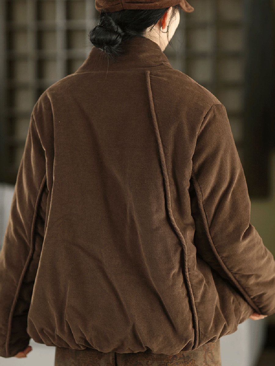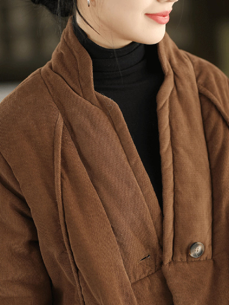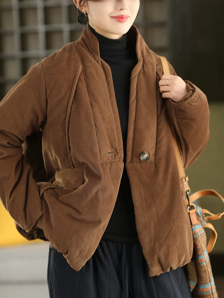 Kvinnors vinter retro ren färg vadderad standkrage kappa