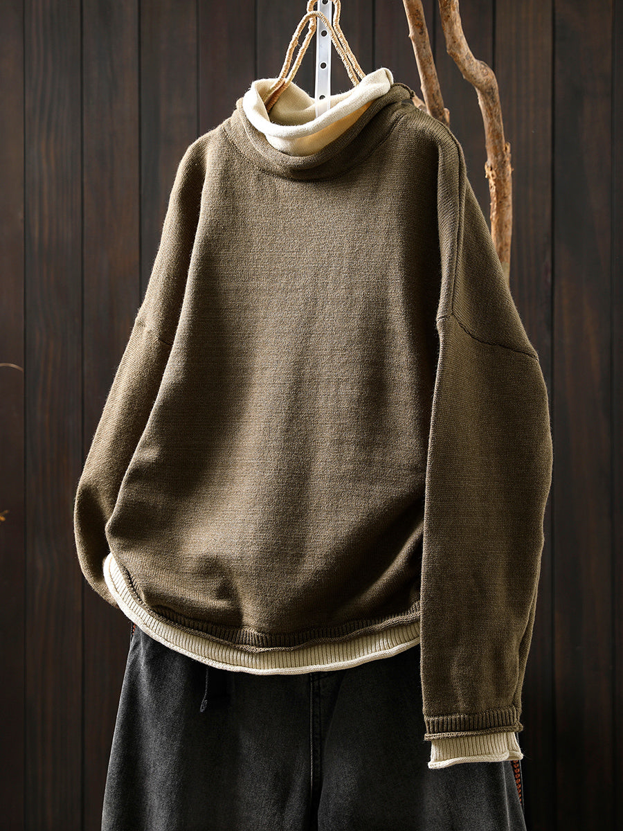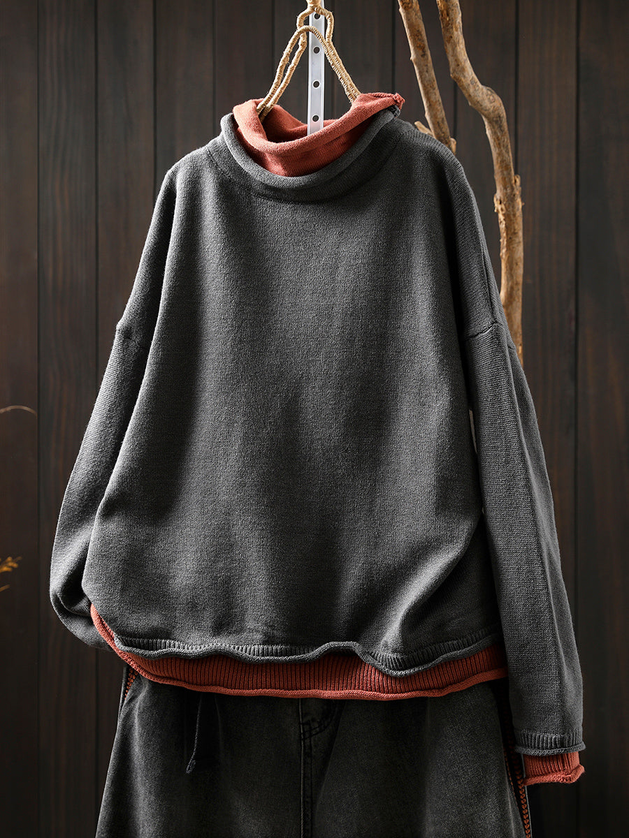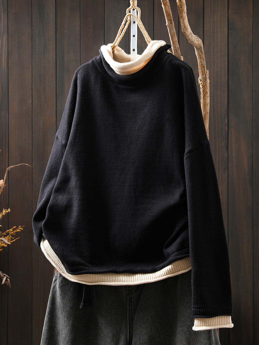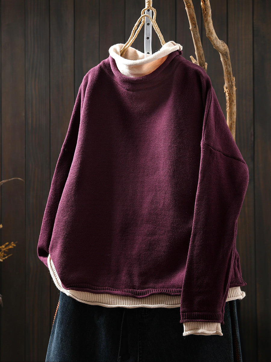 女士秋季藝術風假兩件式高領毛衣