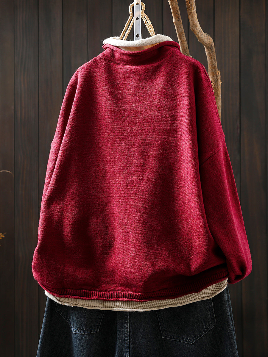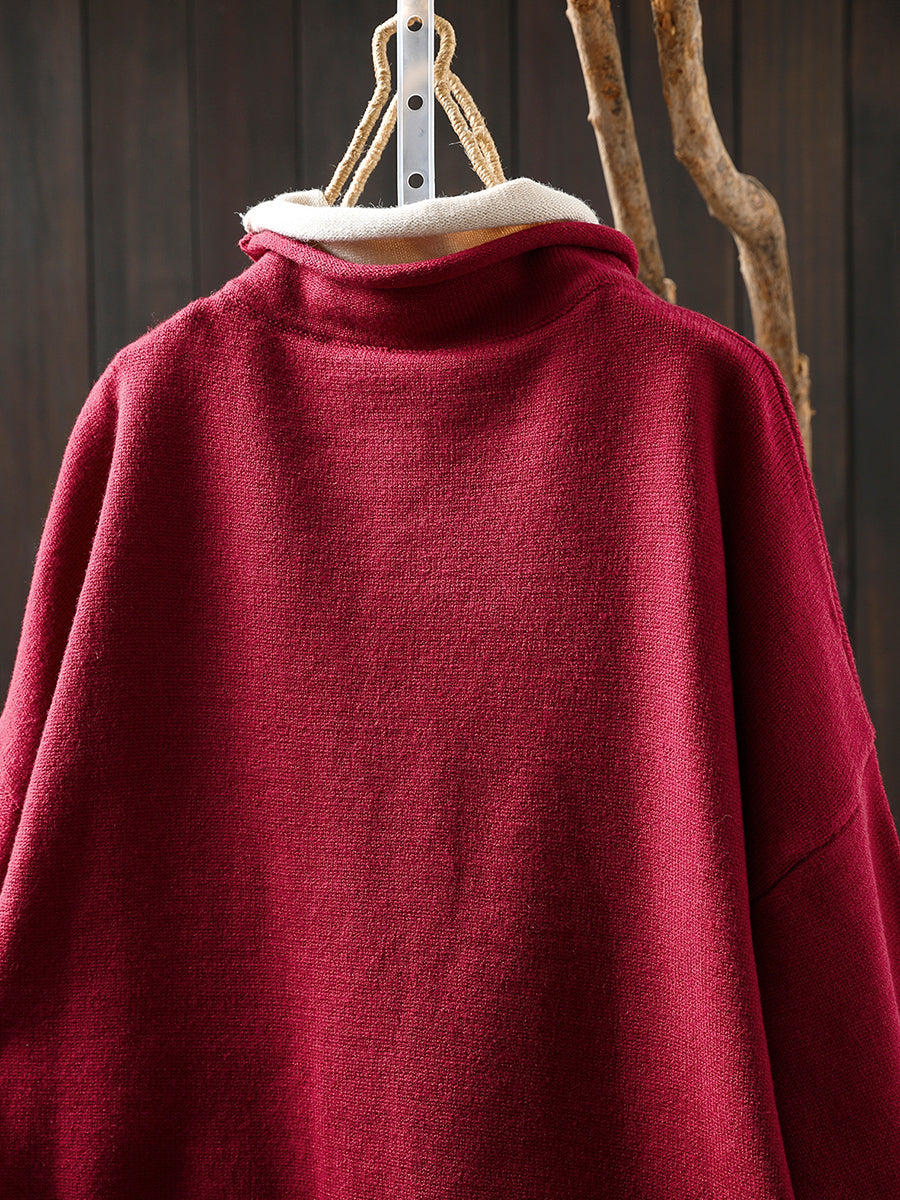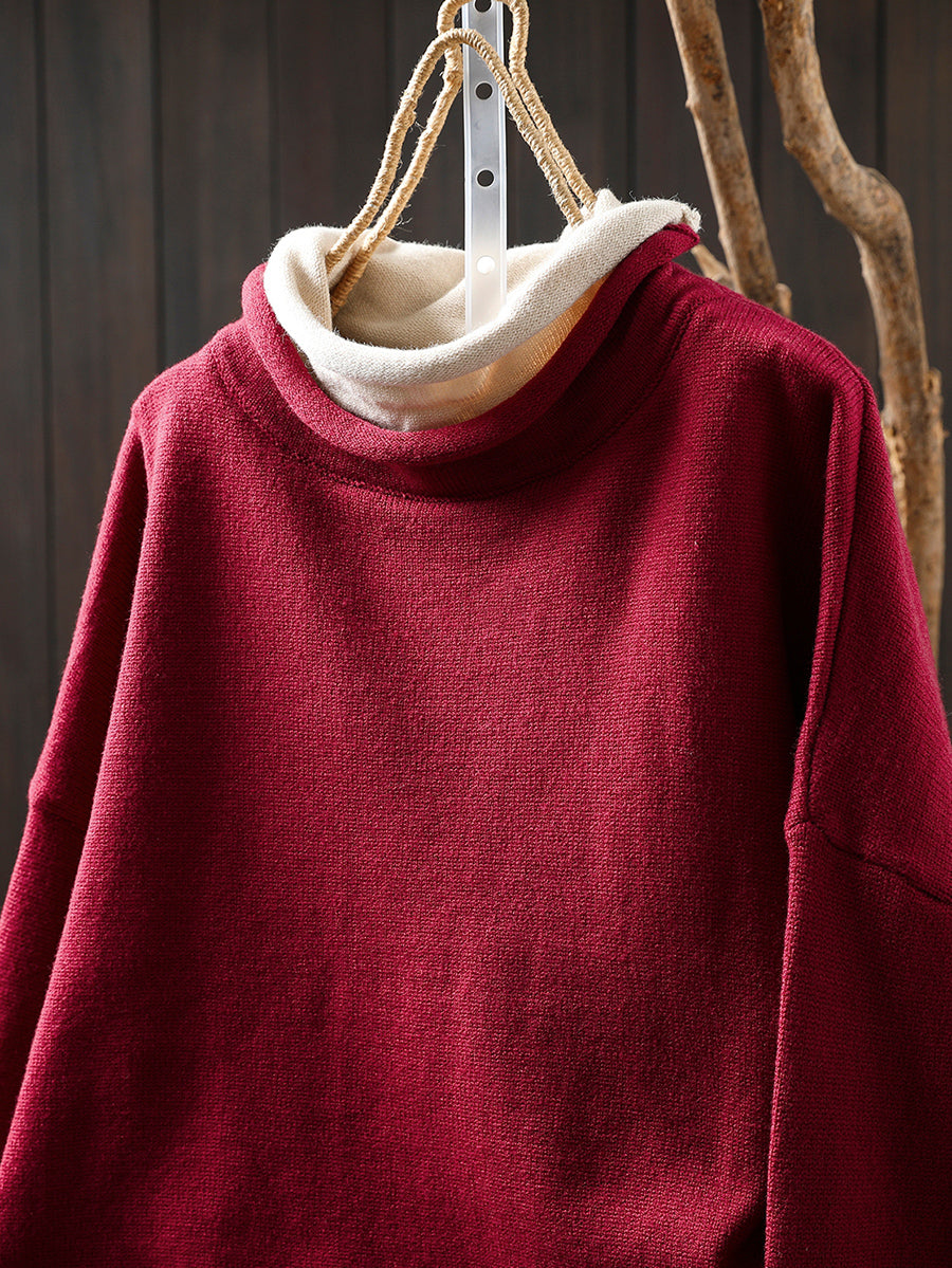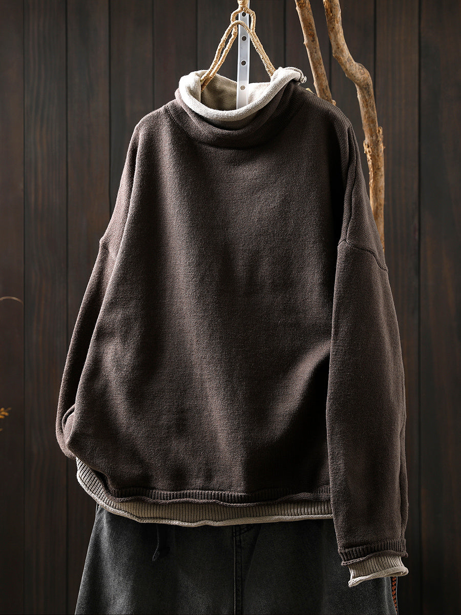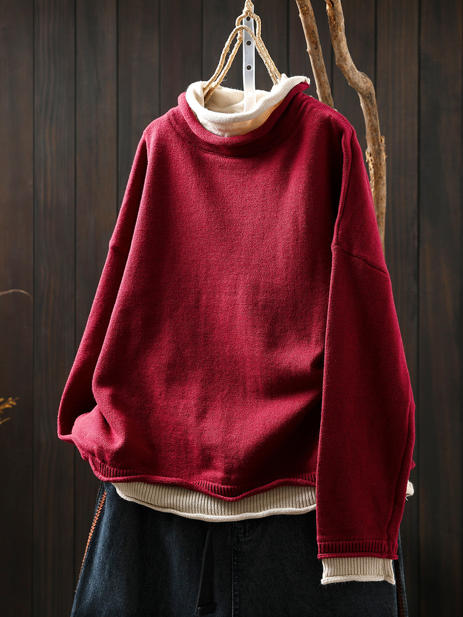 女士秋季藝術風假兩件式高領毛衣
