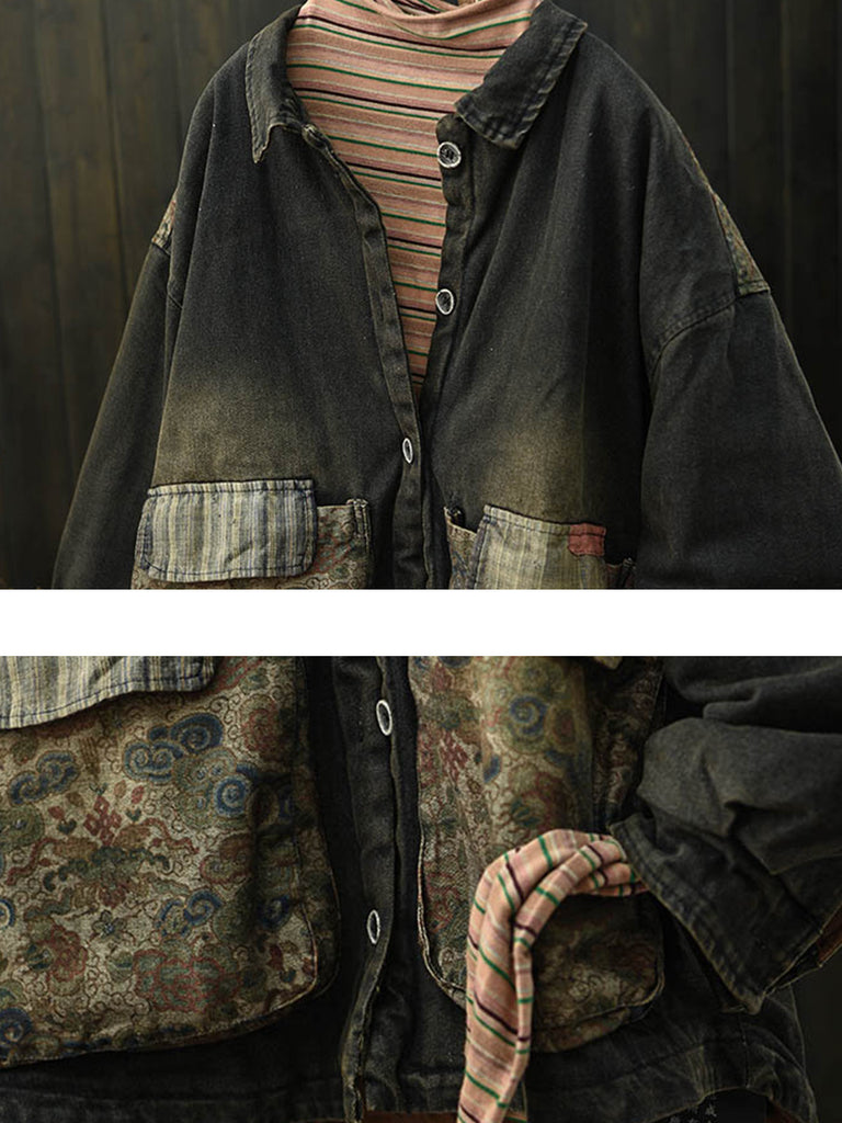 這款牛仔外套採用牛仔布製成,飾有花卉圖案和經典翻領。全長插肩袖設計,散發復古氣息,是秋冬的理想選擇。