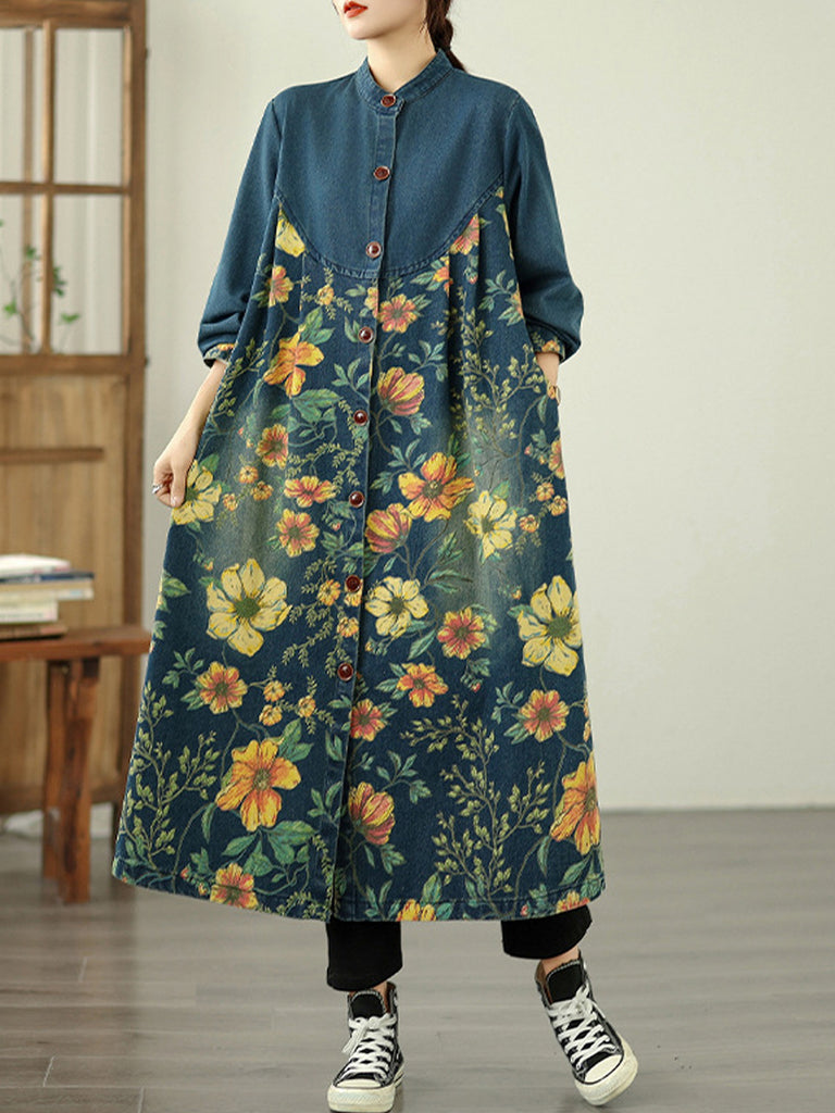 女款秋季牛仔花立領大衣