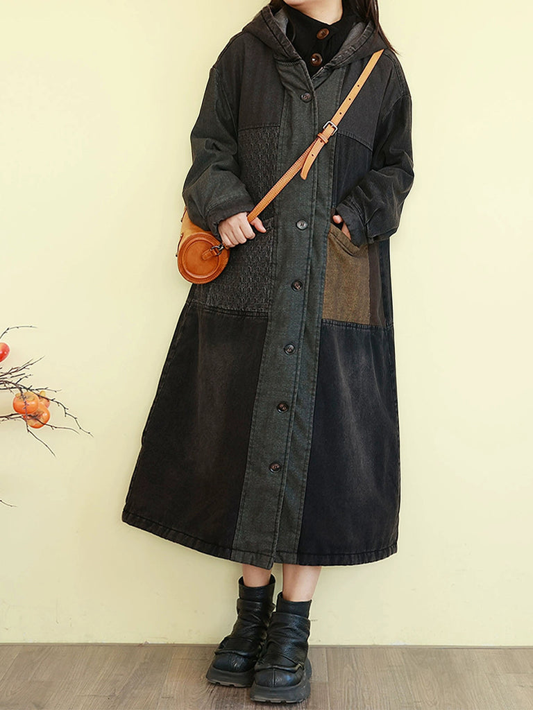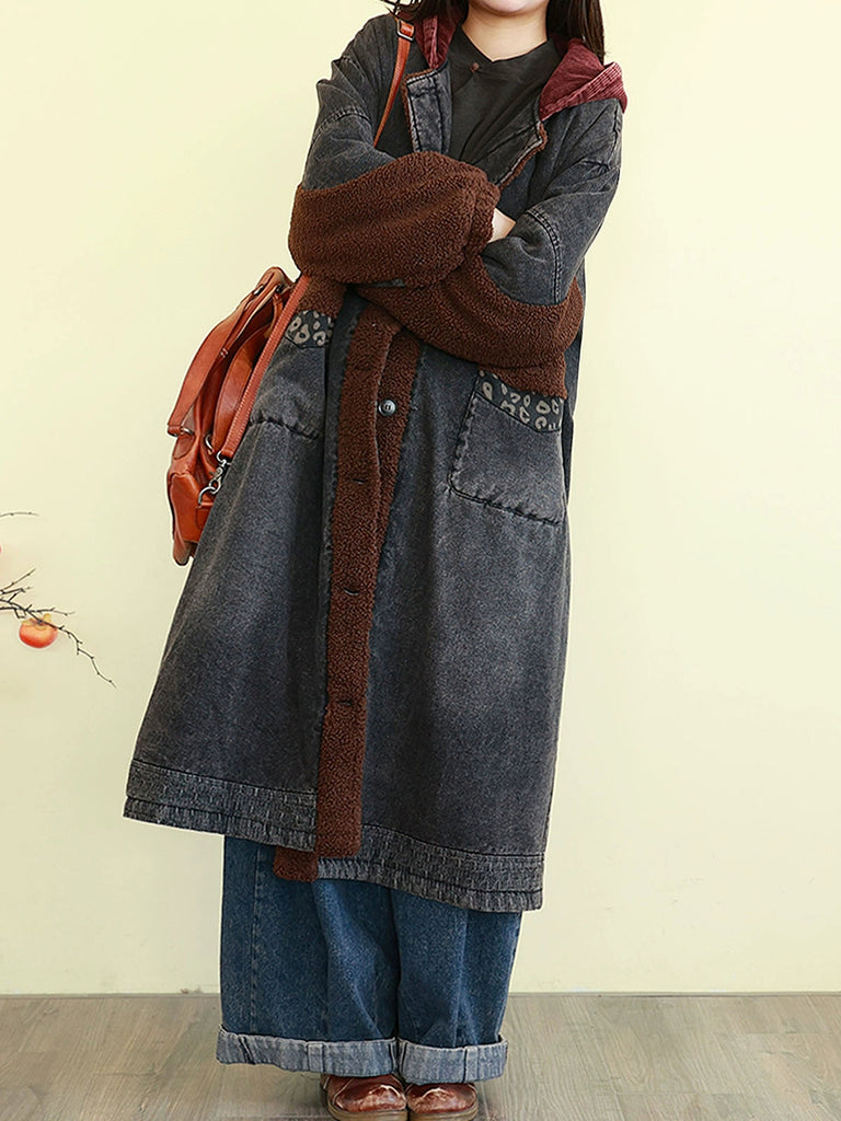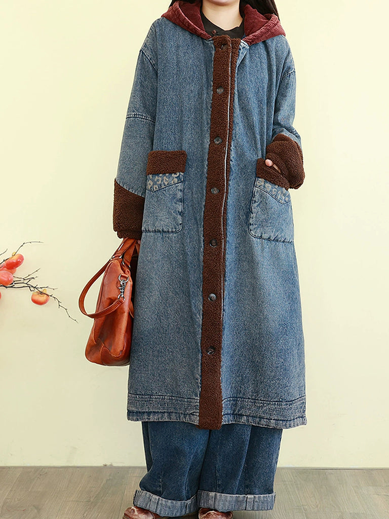 女士冬季復古拼接牛仔棉襖外套