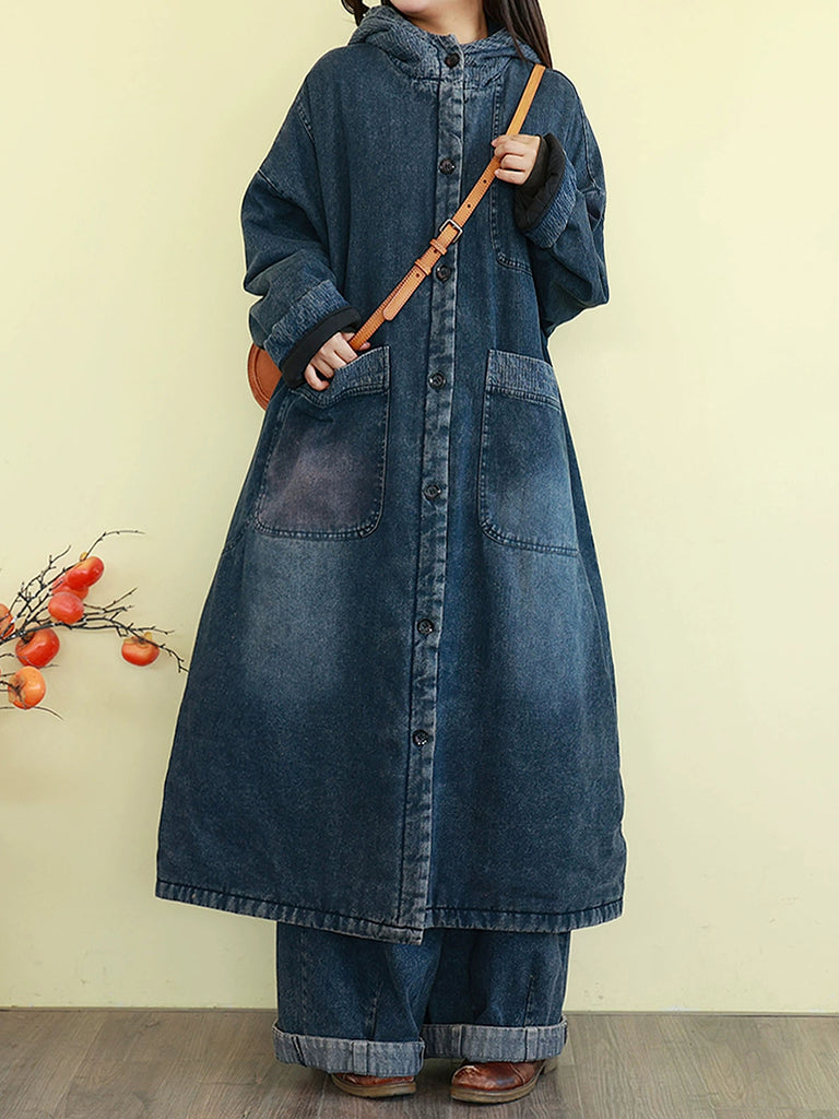 女士冬季復古水洗牛仔棉襖