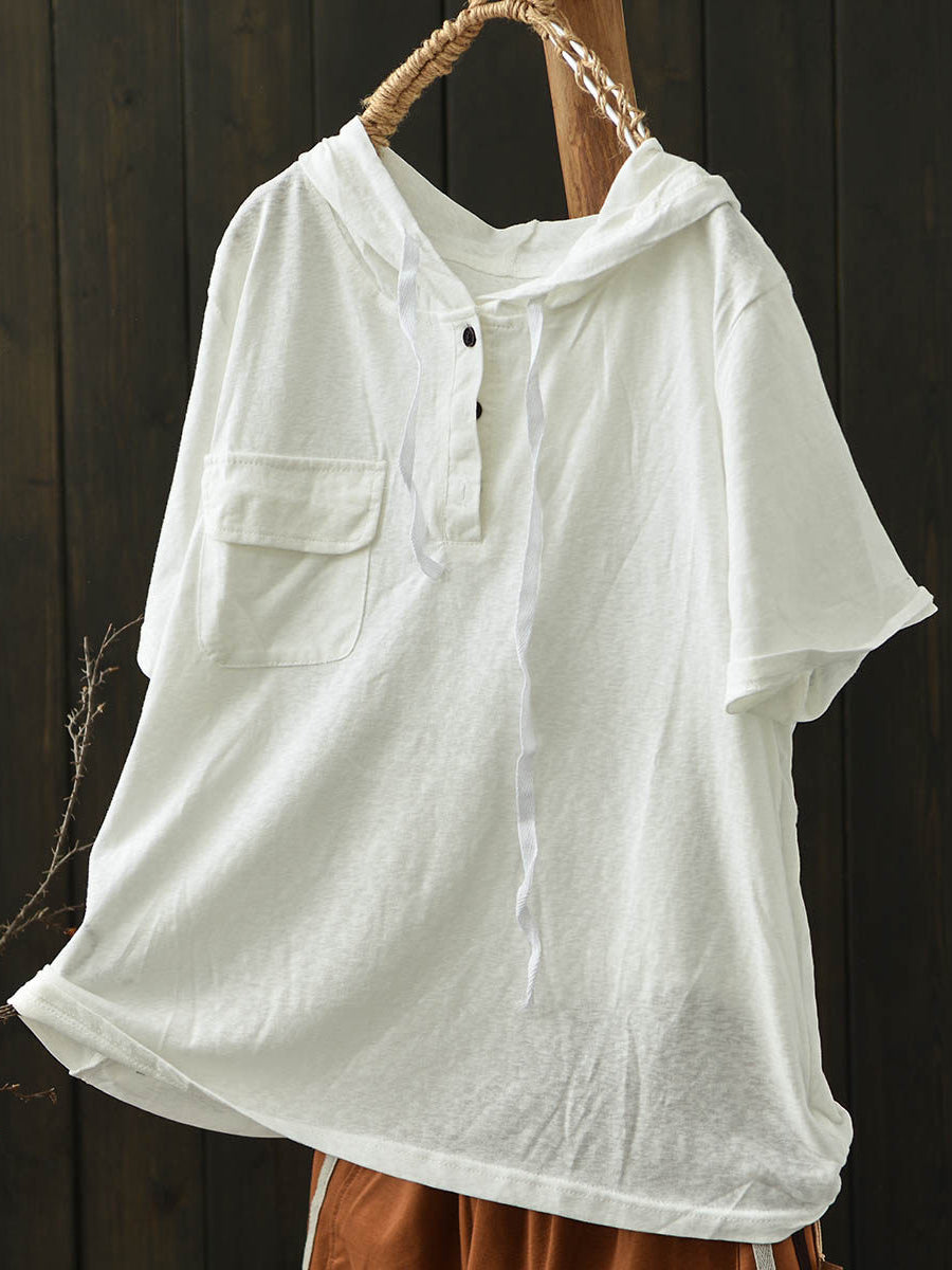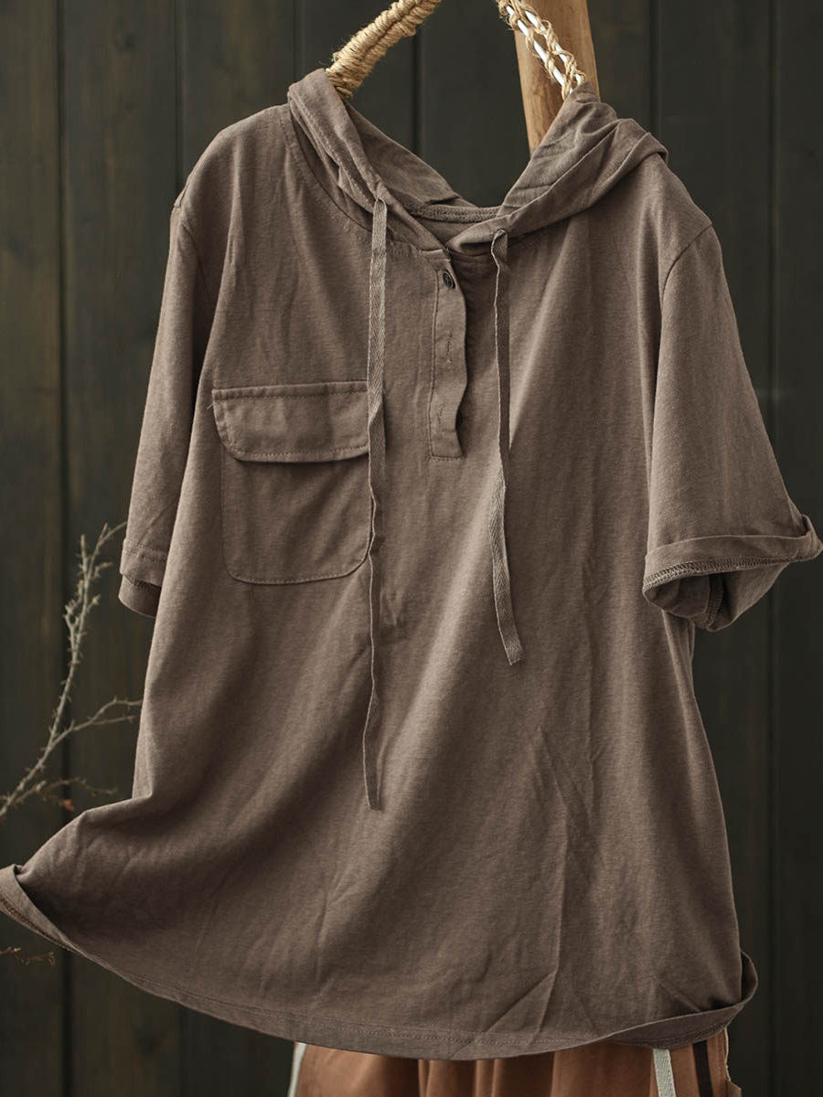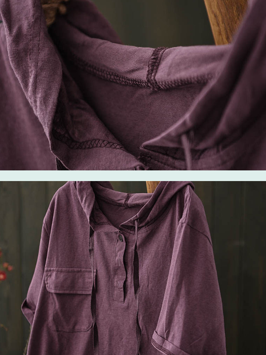 女士夏季休閒純色棉質連帽衫