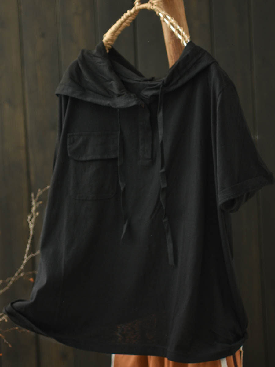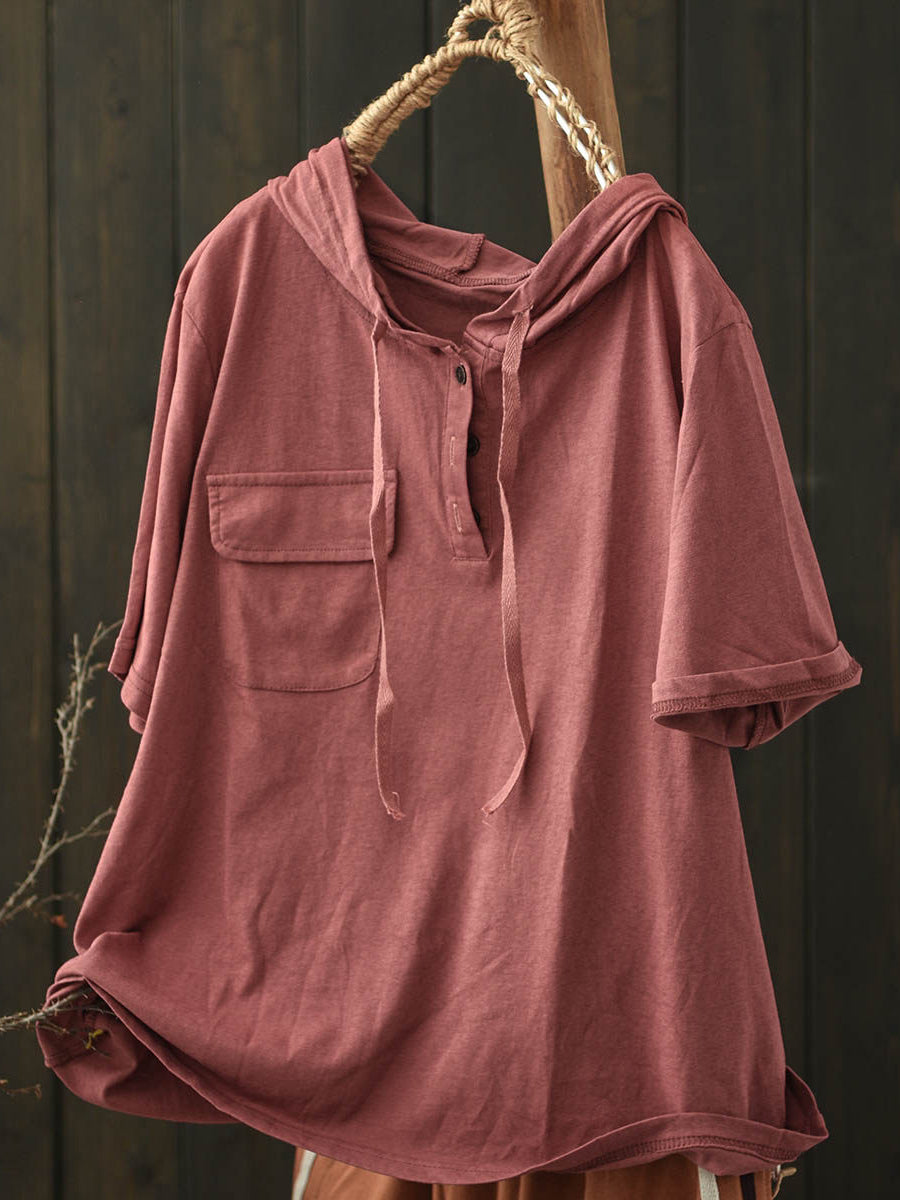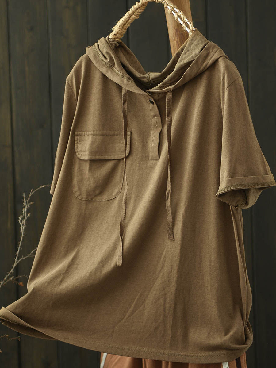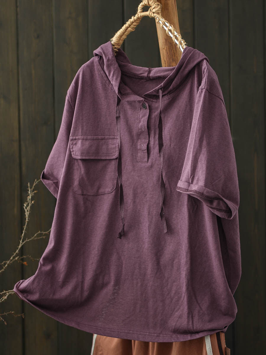 女士夏季休閒純色棉質連帽衫