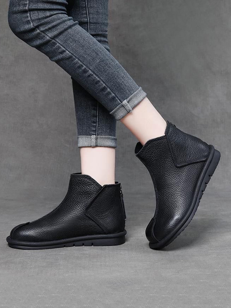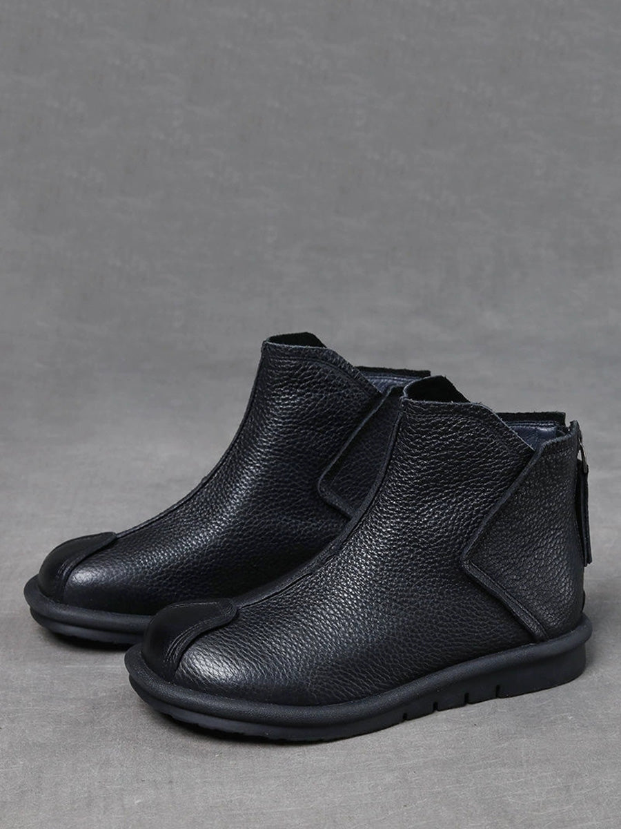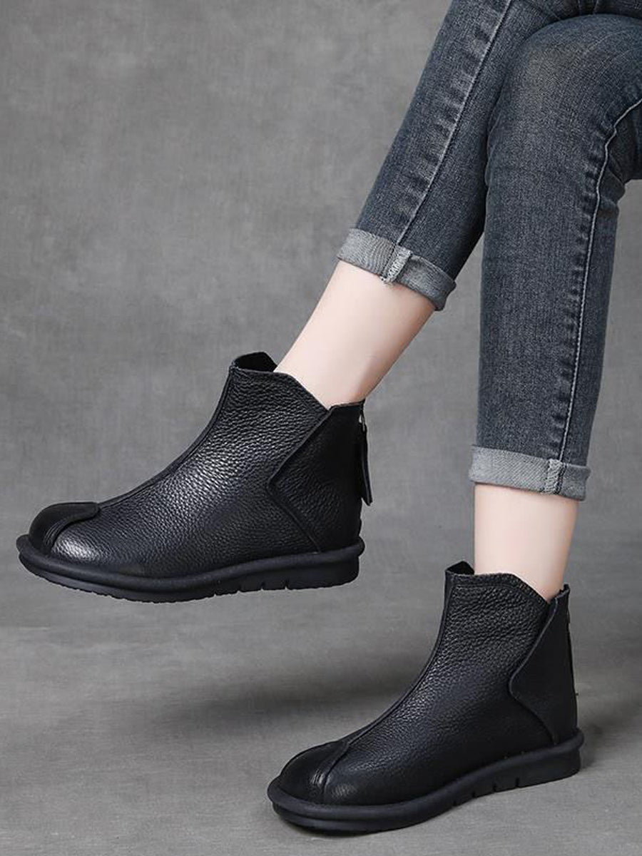 女士復古真皮拼接踝靴