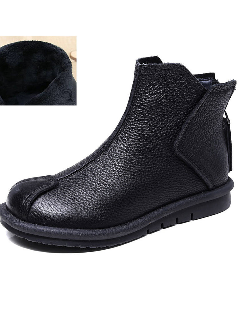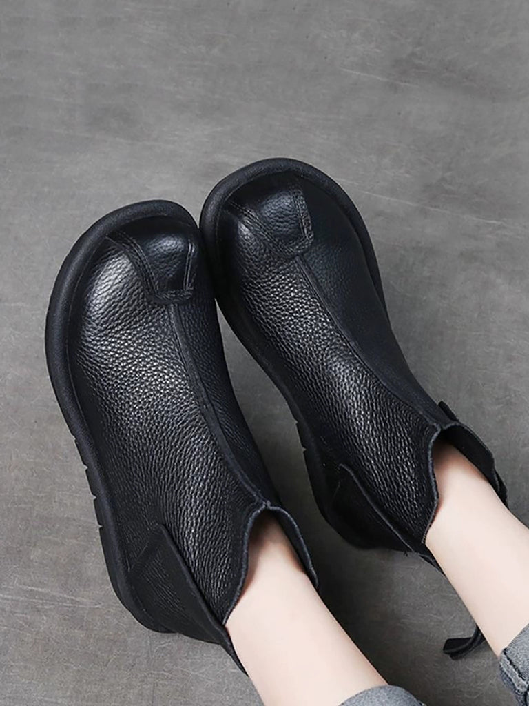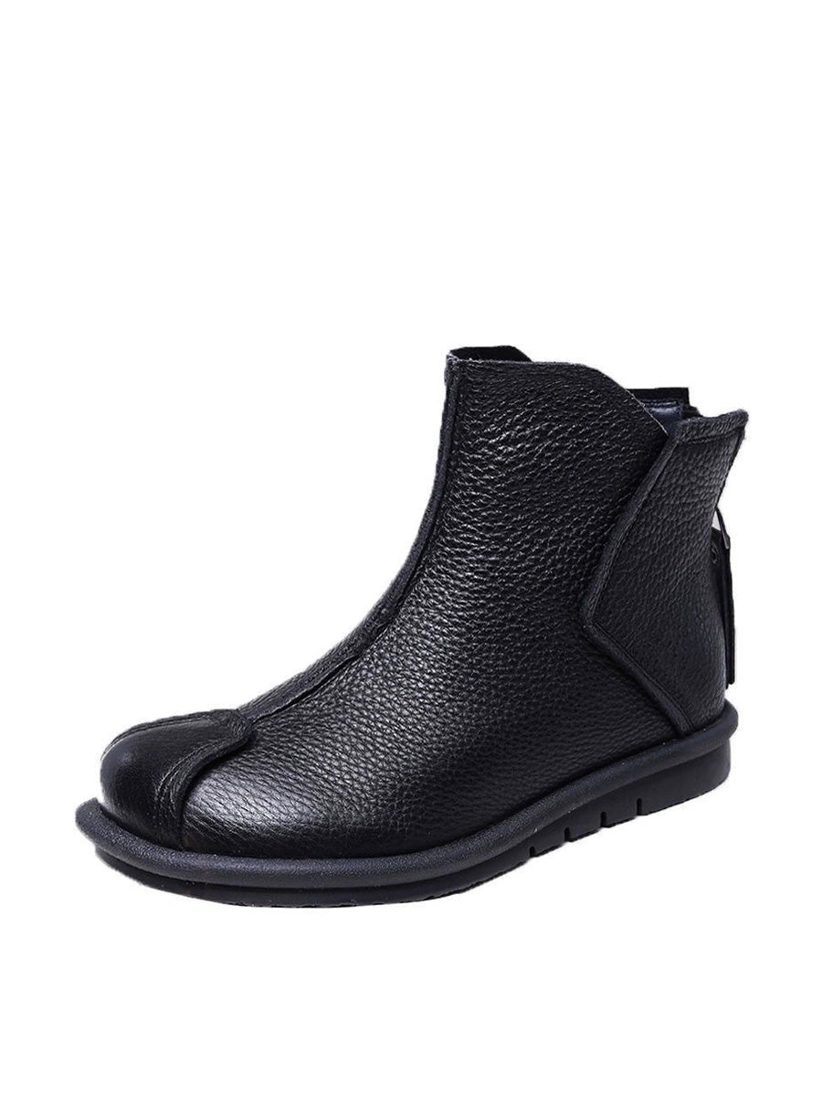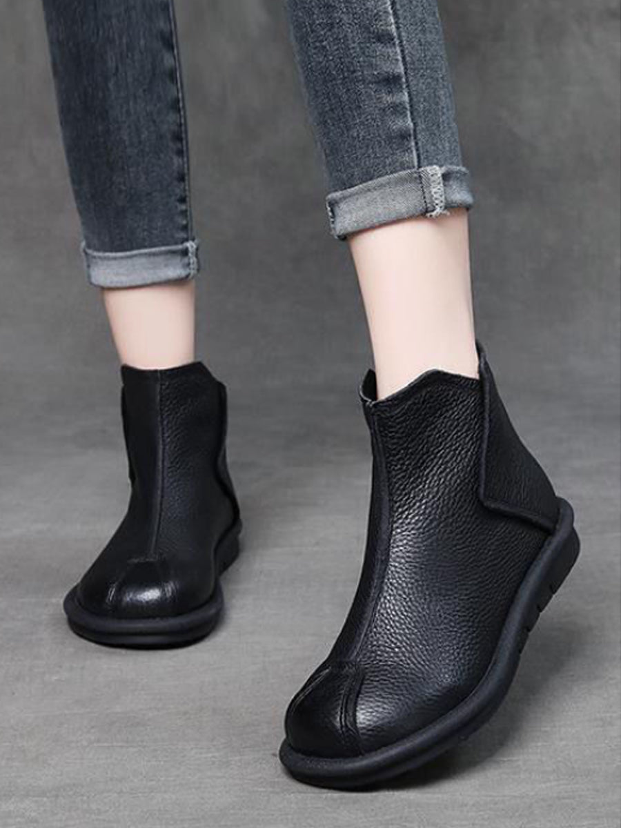 女士復古真皮拼接踝靴
