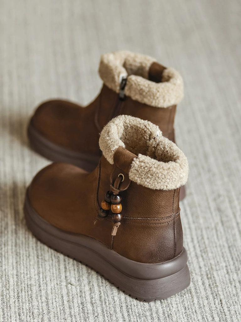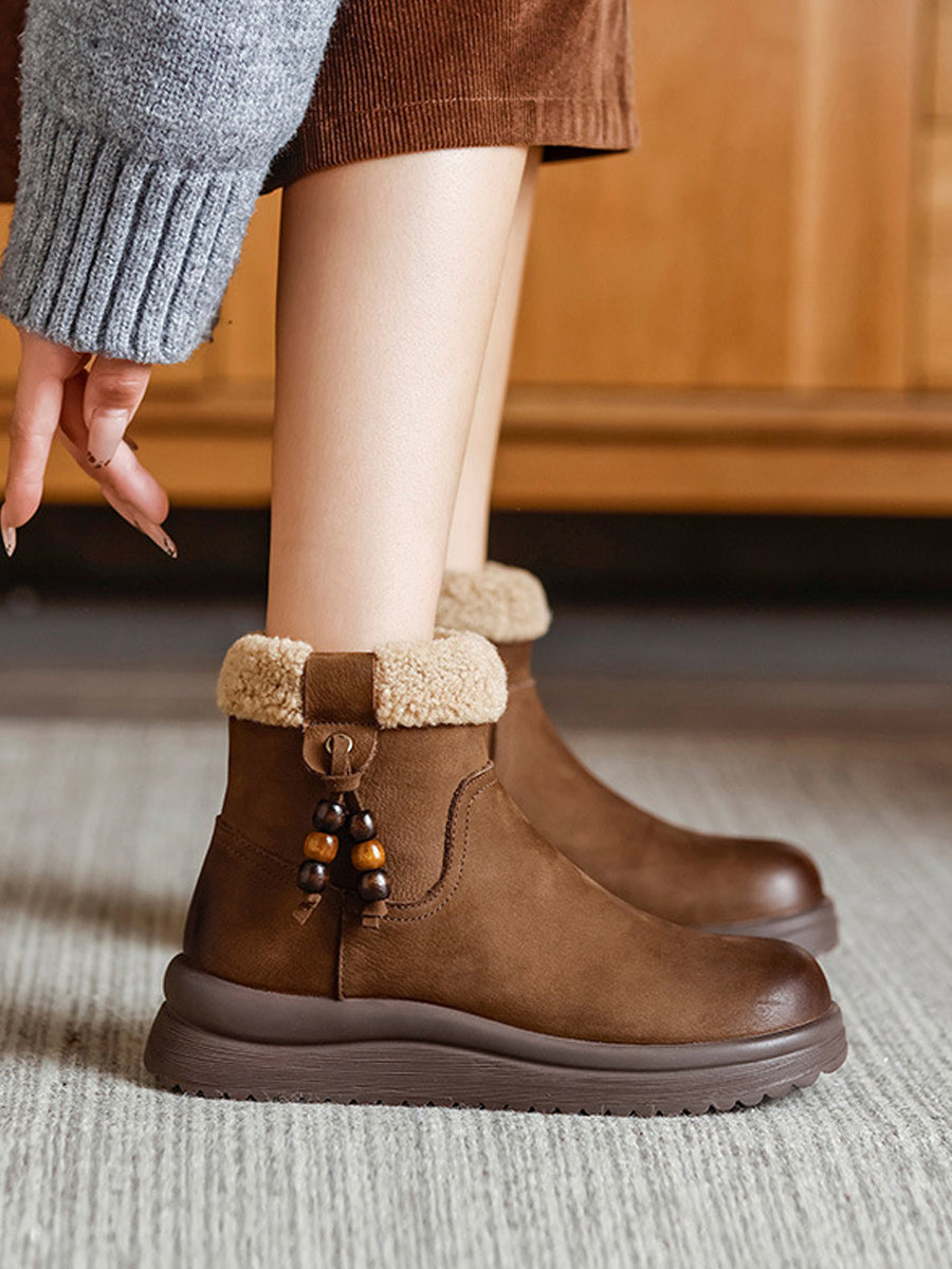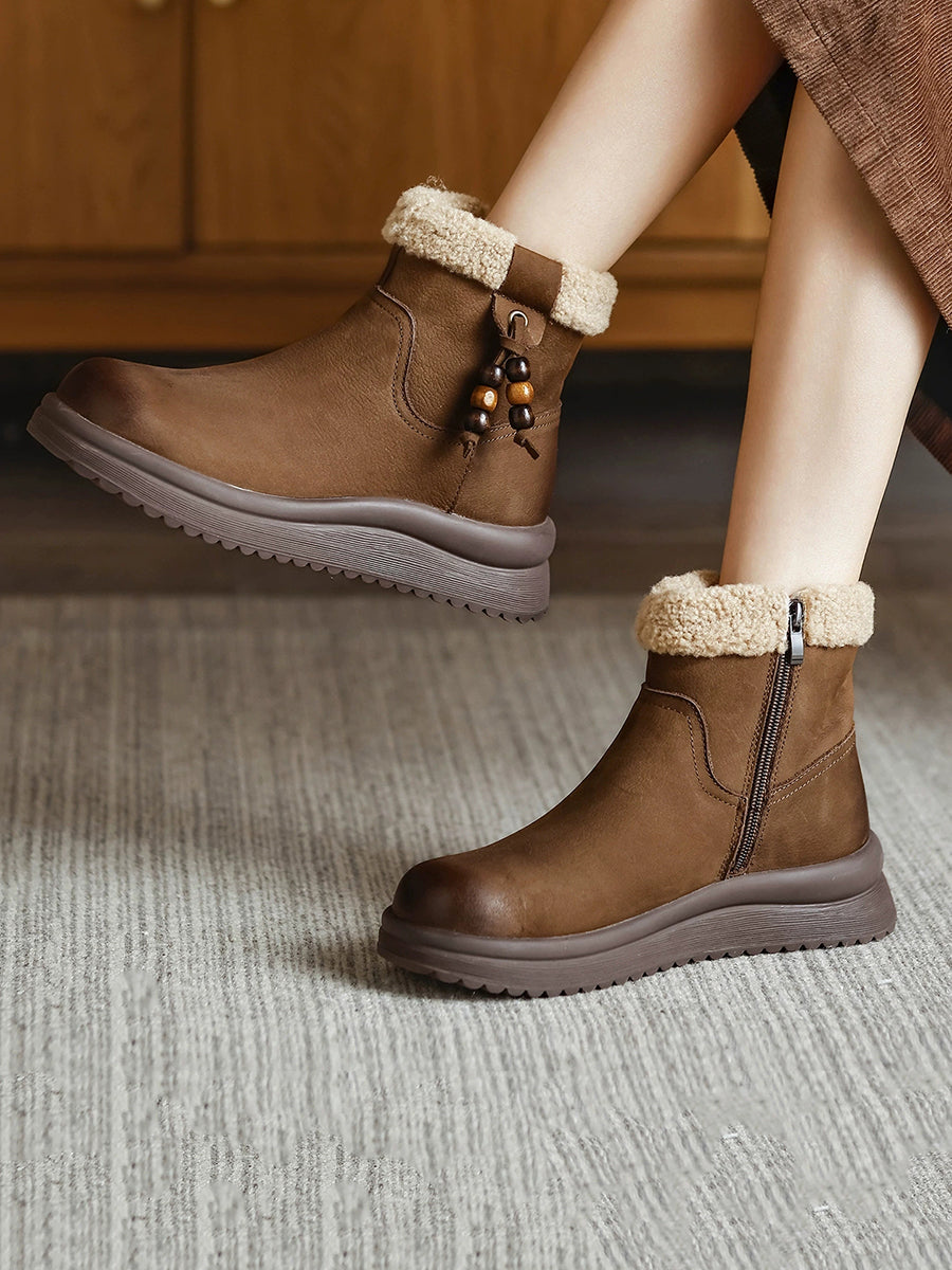 女士冬季真皮羊毛內襯靴