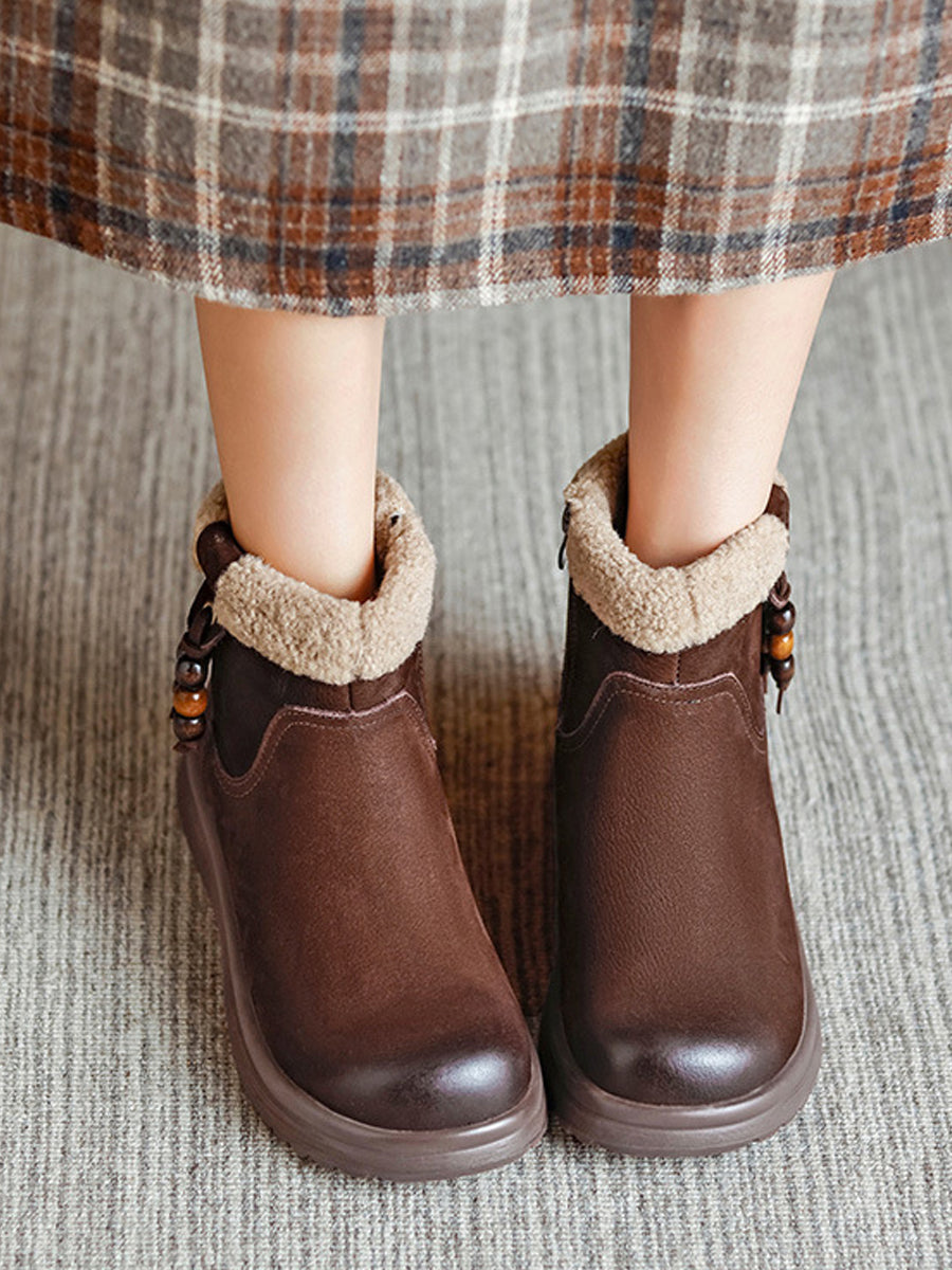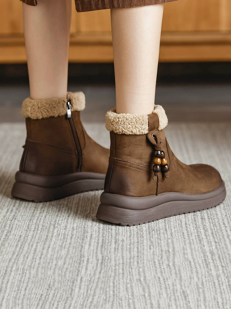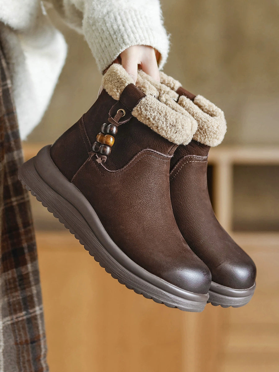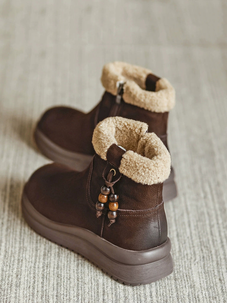 女士冬季真皮羊毛內襯靴