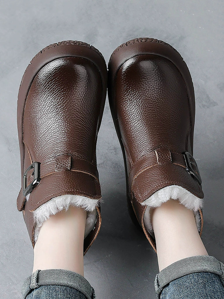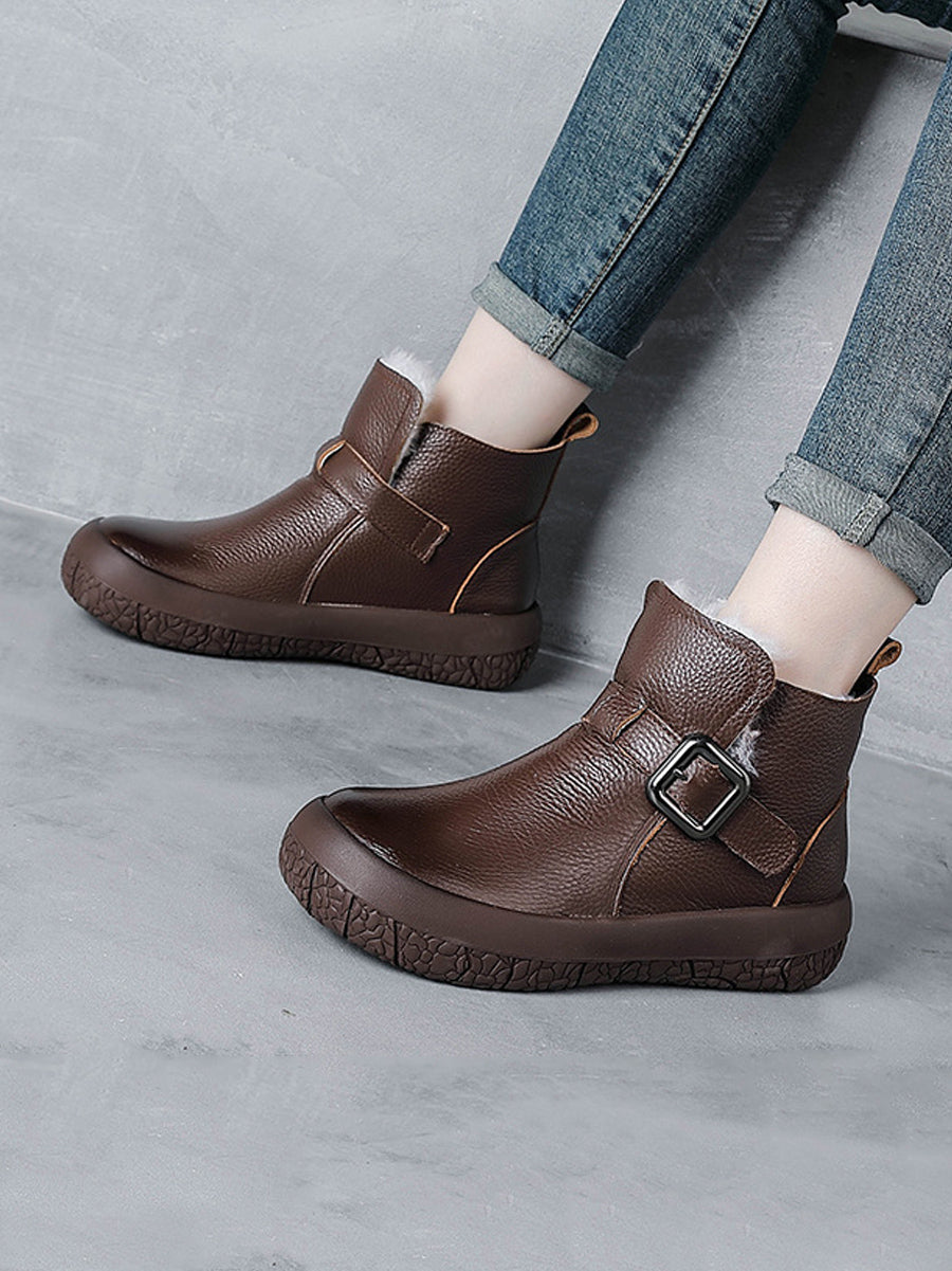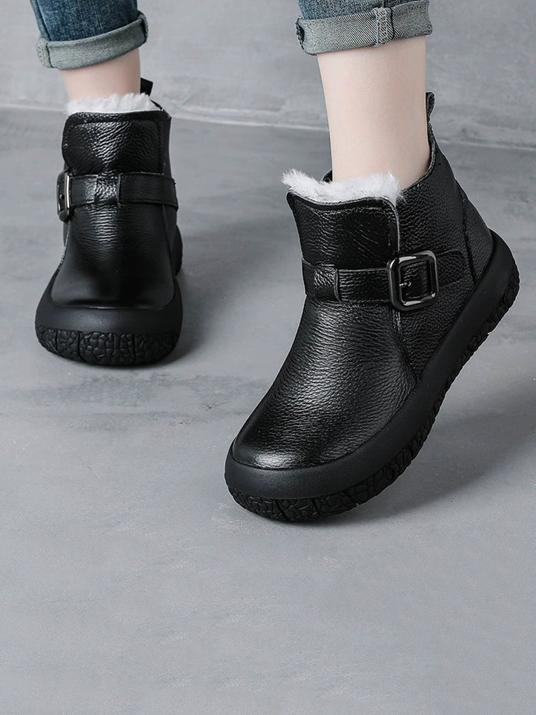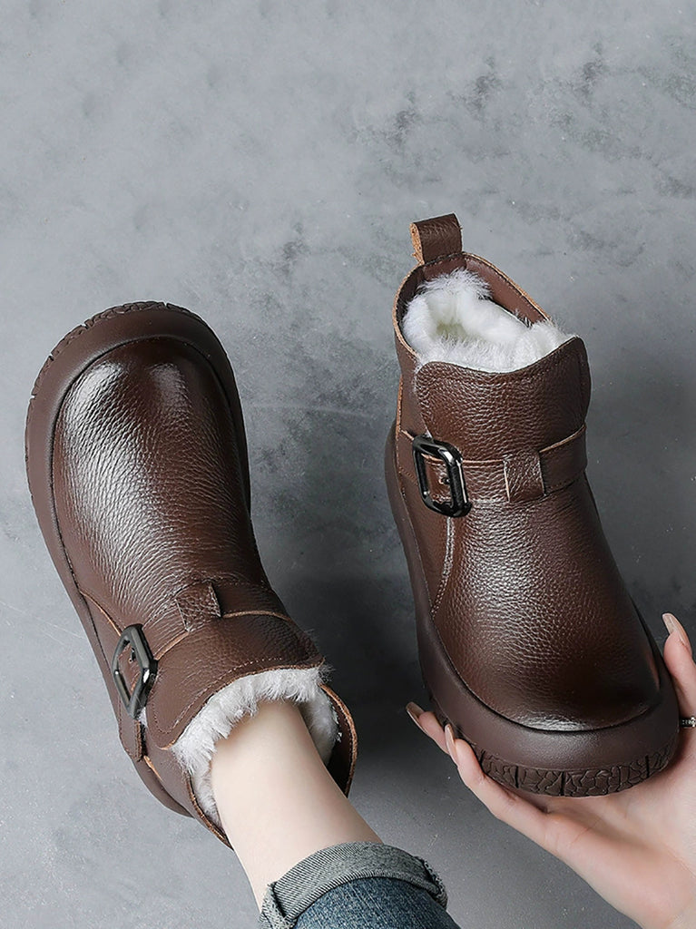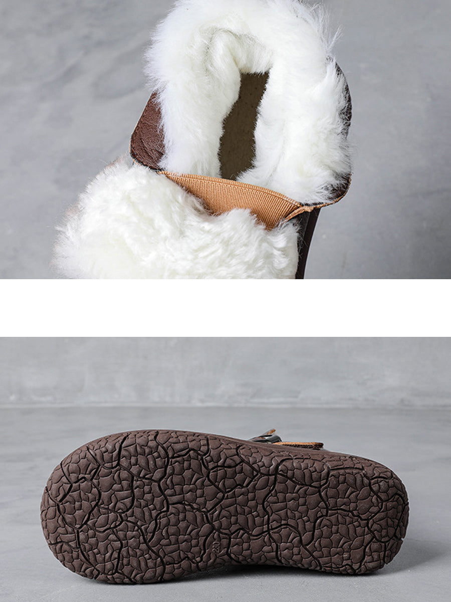 女士冬季真皮羊毛襯裡厚底靴