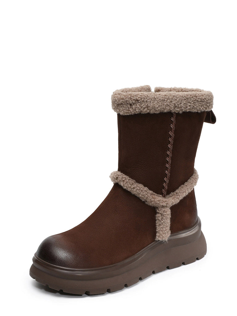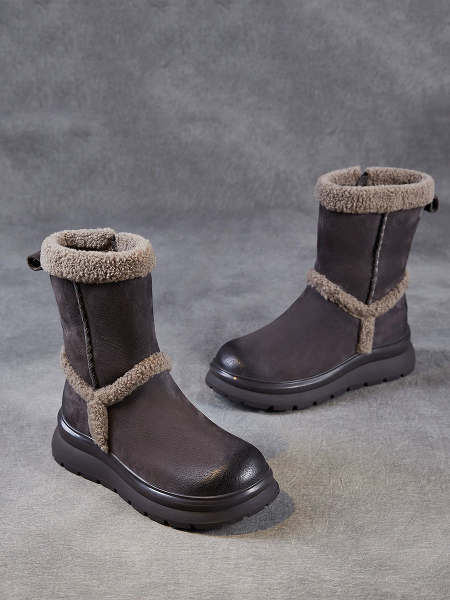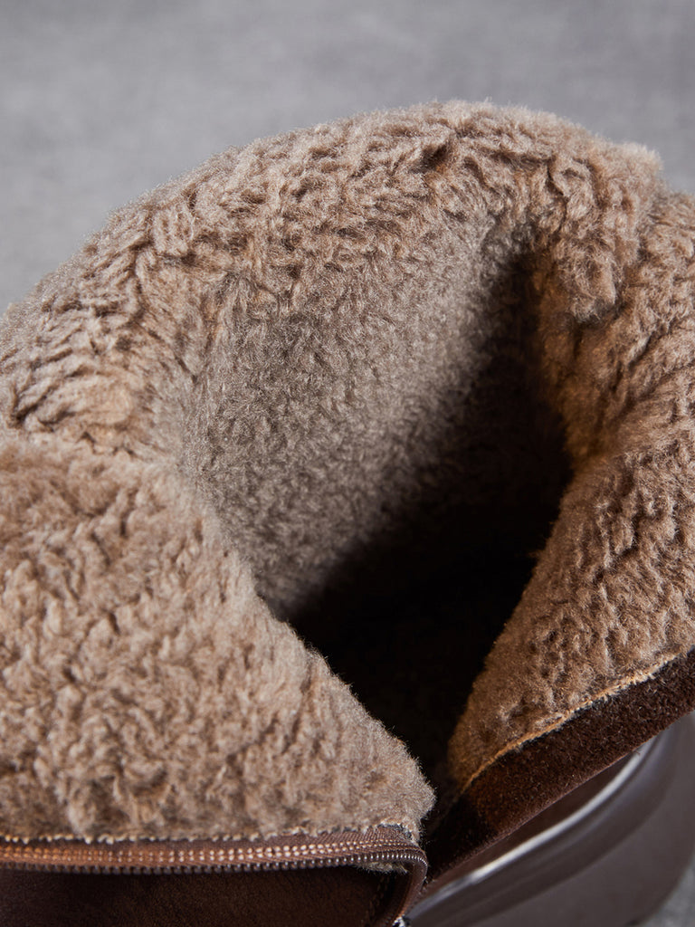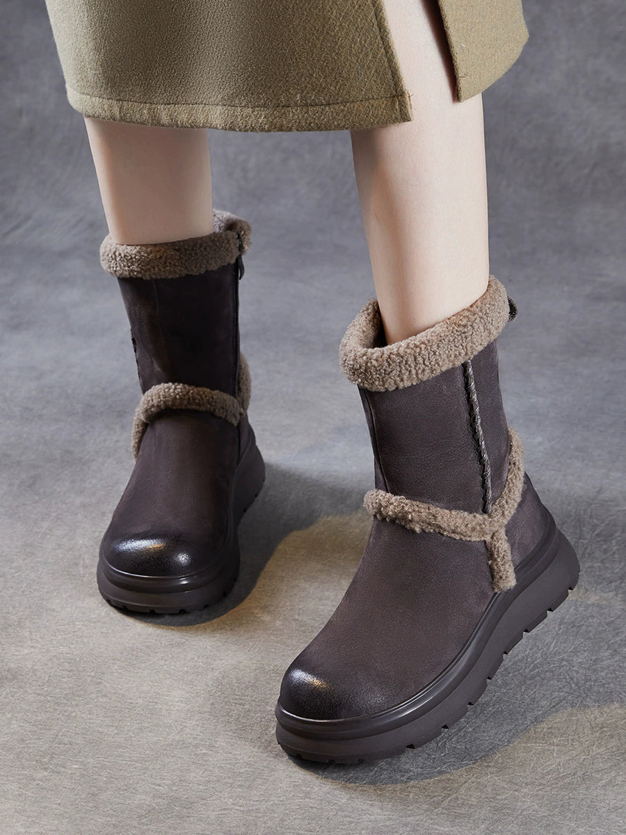 女士冬季真皮拼接羊毛內襯靴