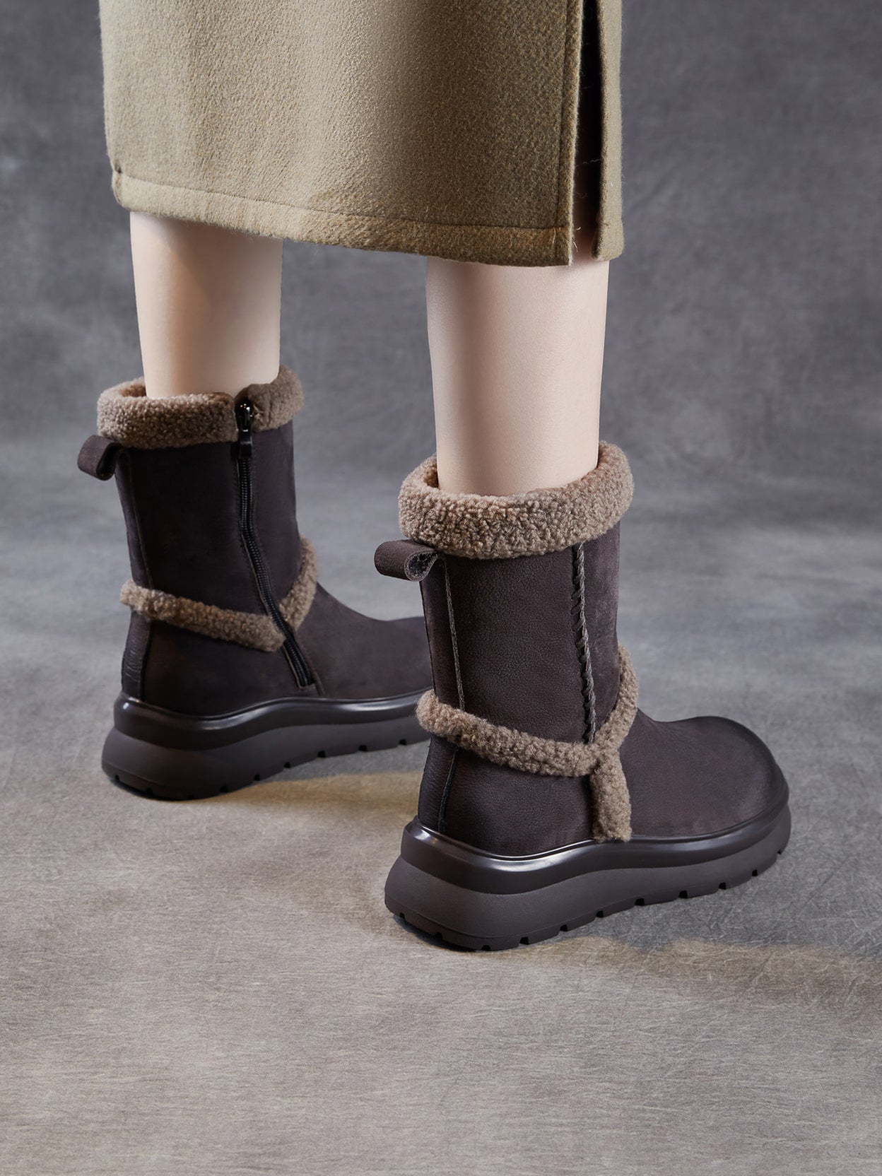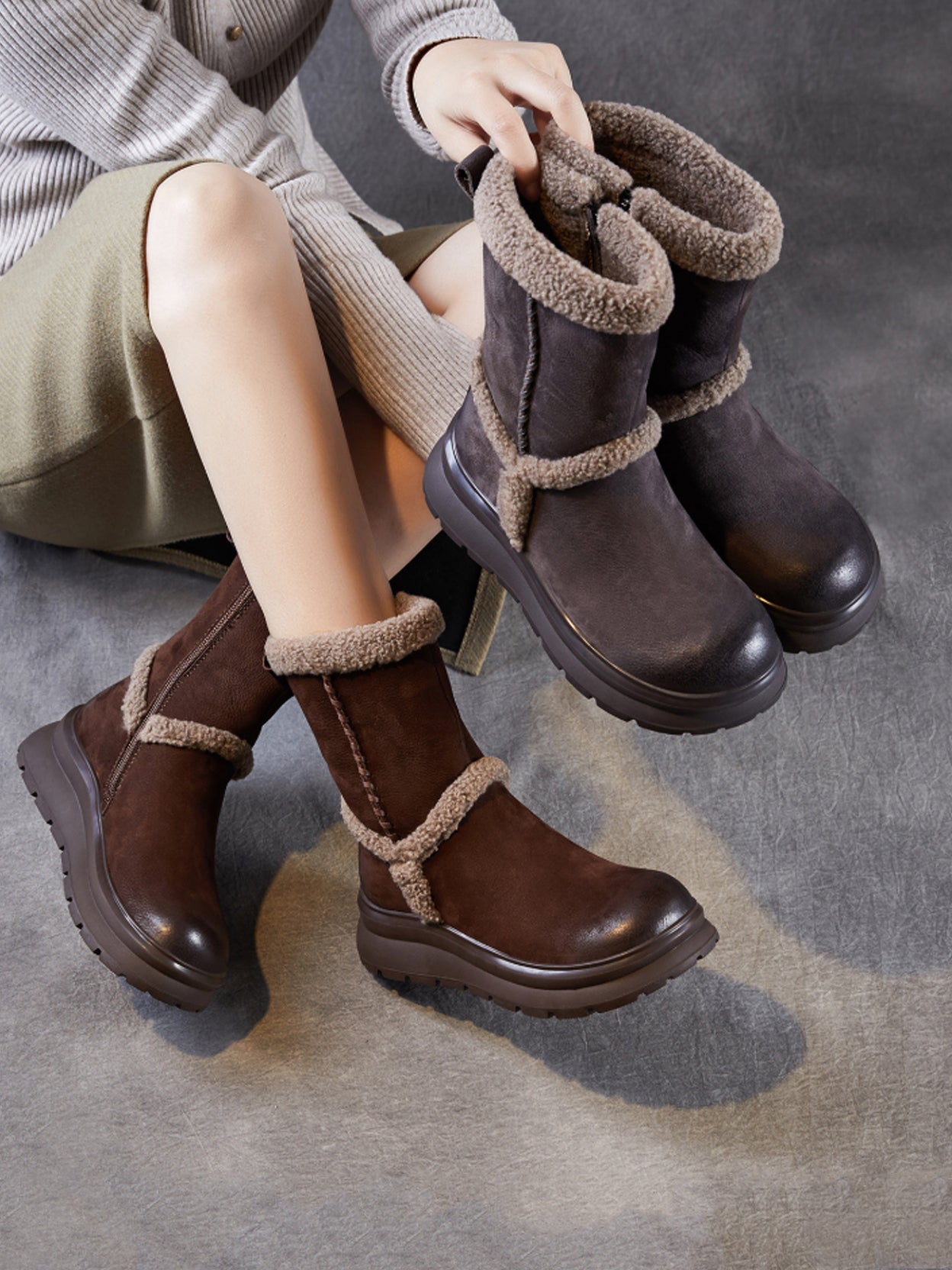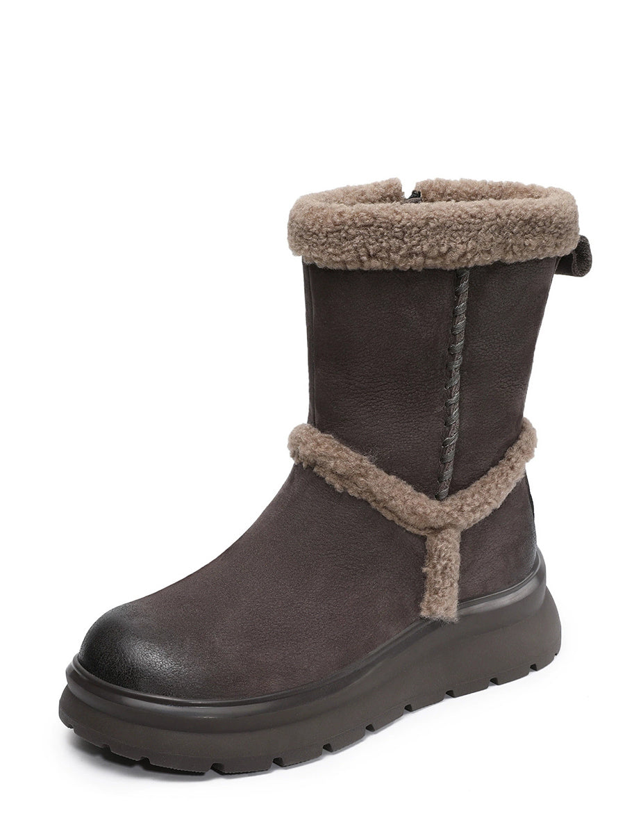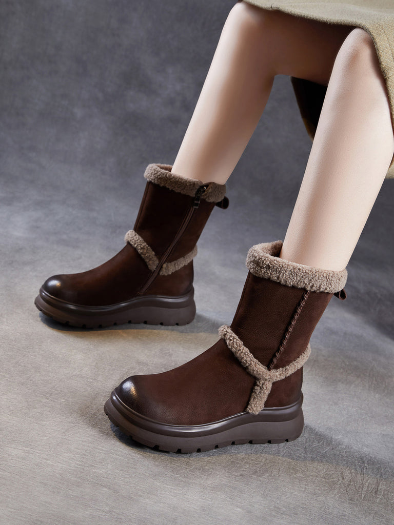 女士冬季真皮拼接羊毛內襯靴