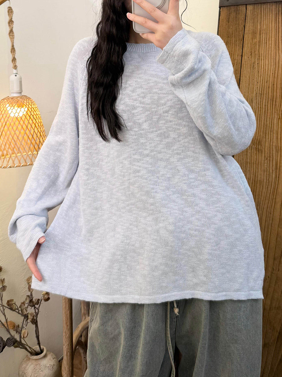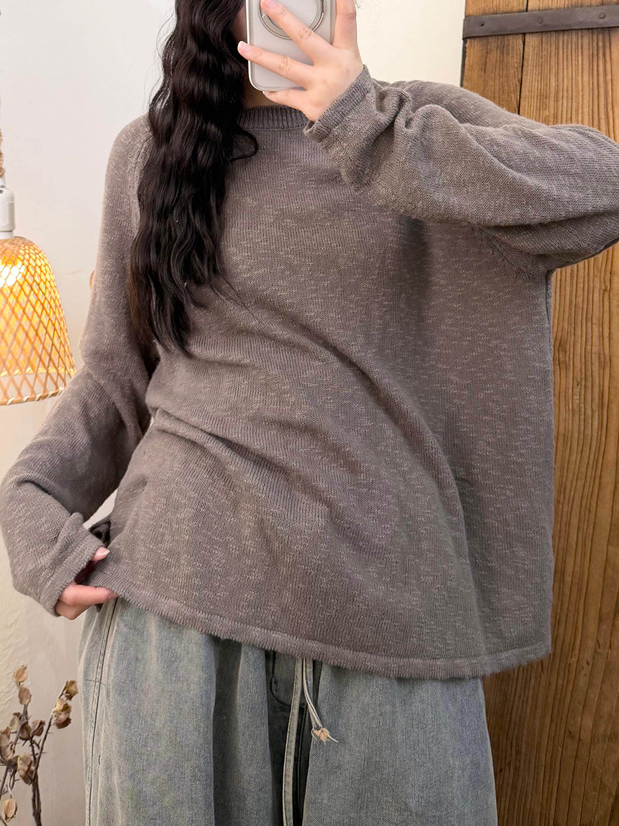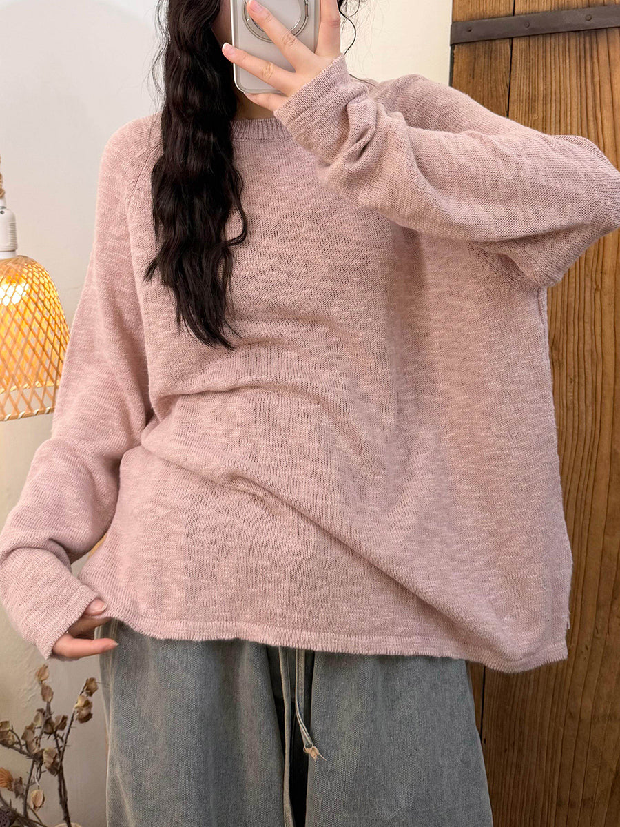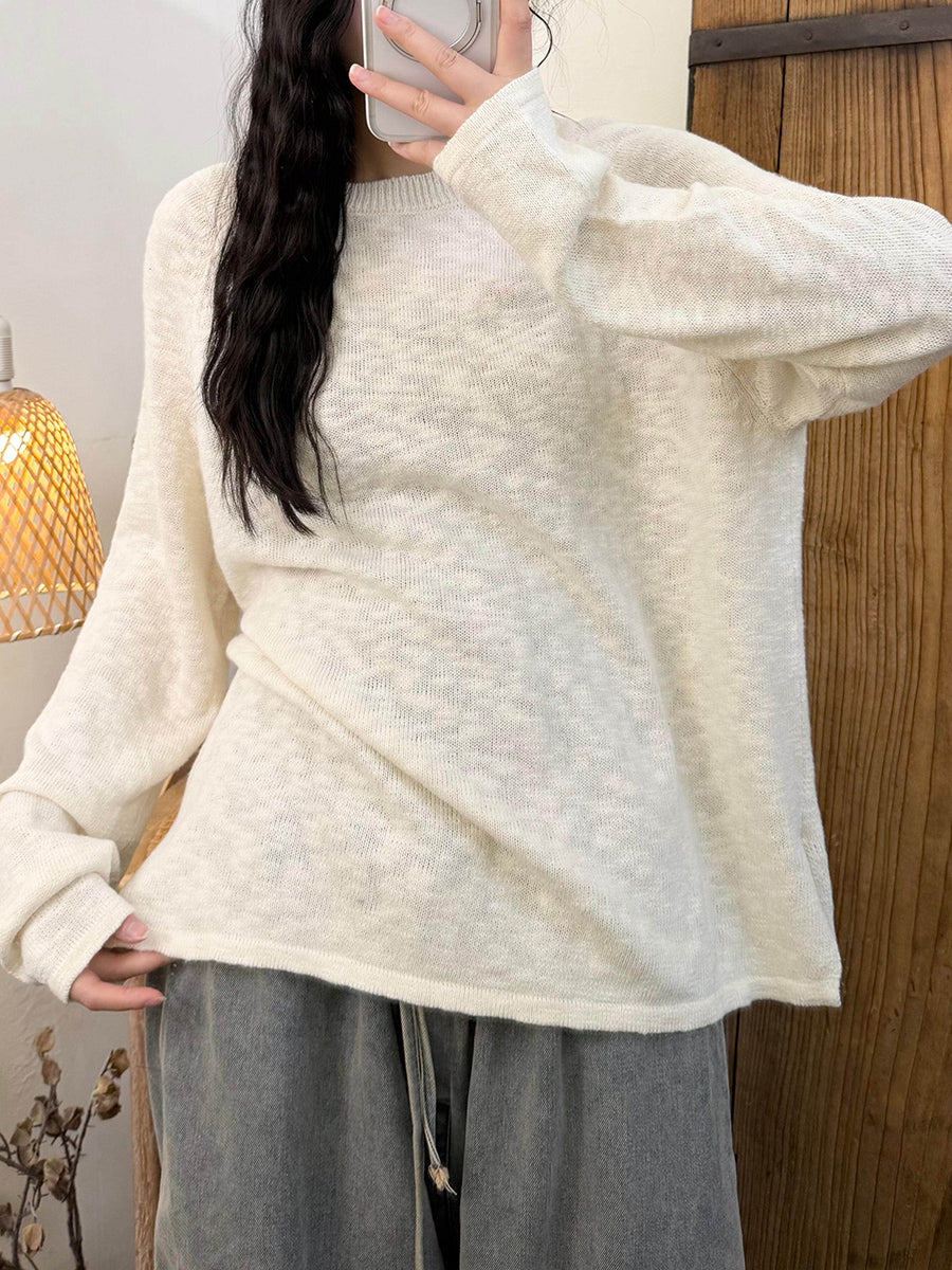 女士春季休閒純色圓領針織衫