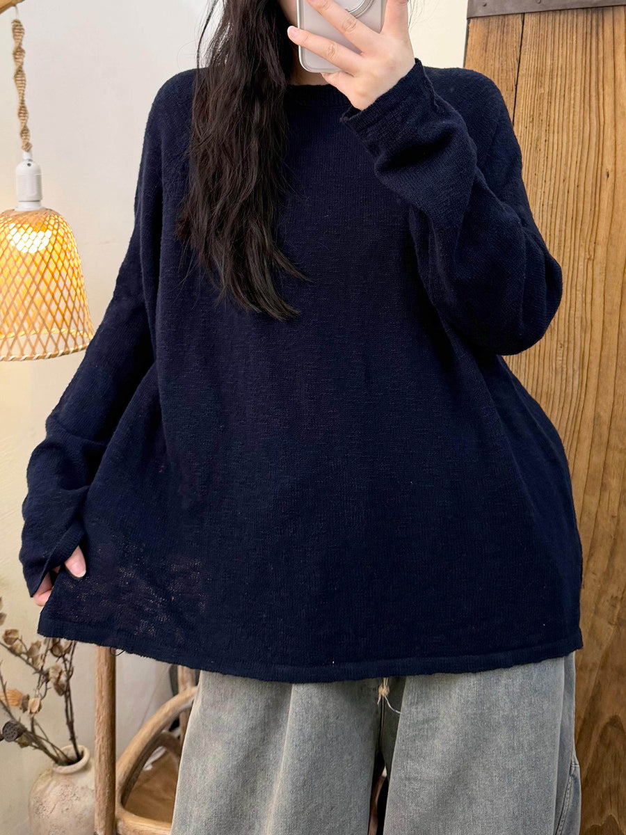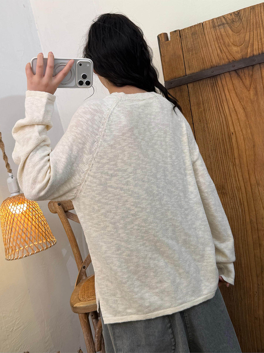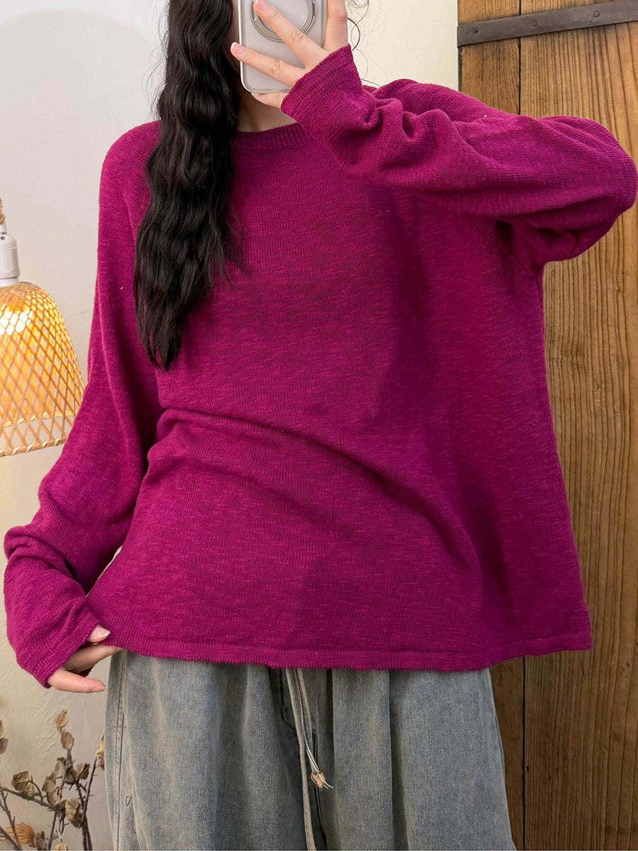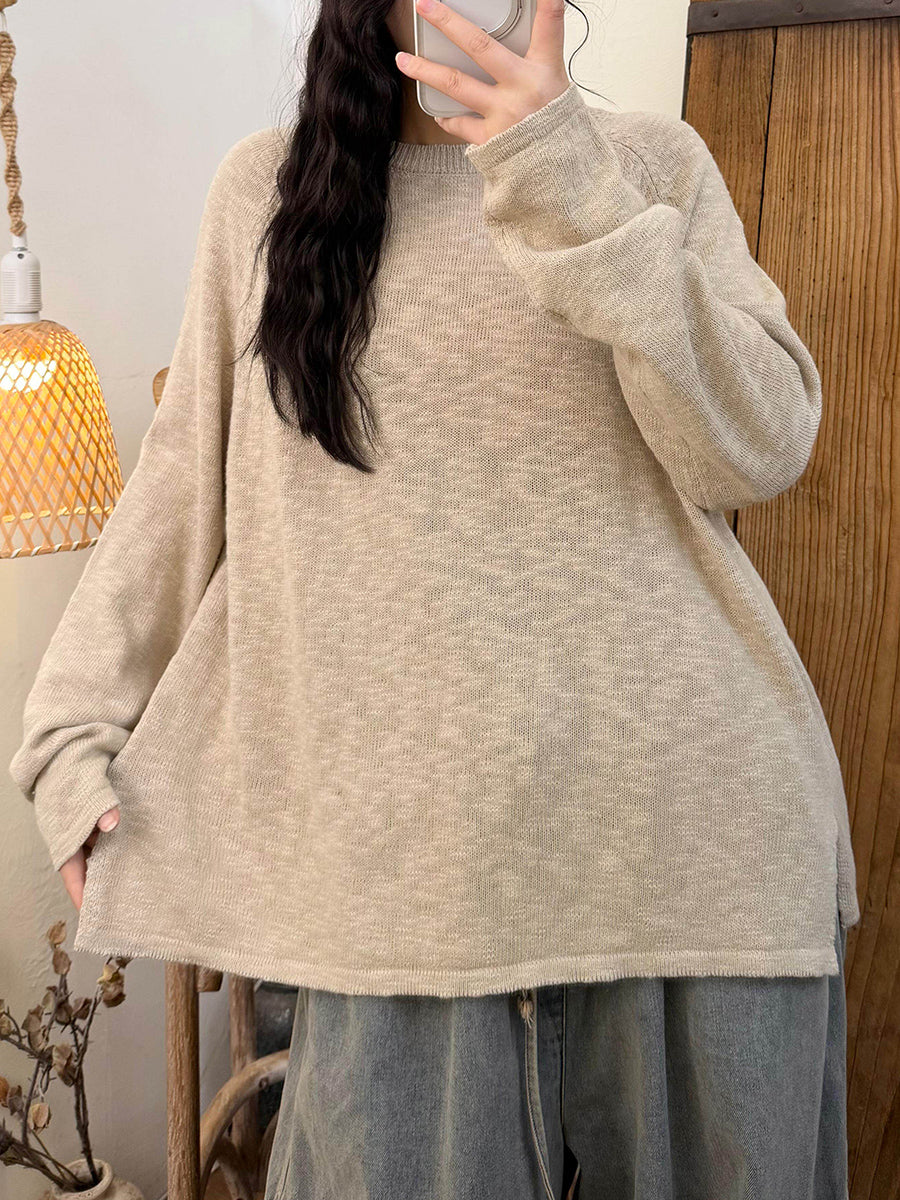 女士春季休閒純色圓領針織衫