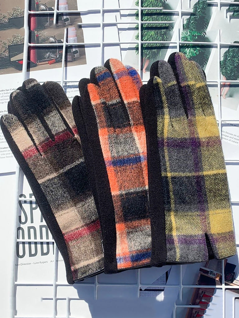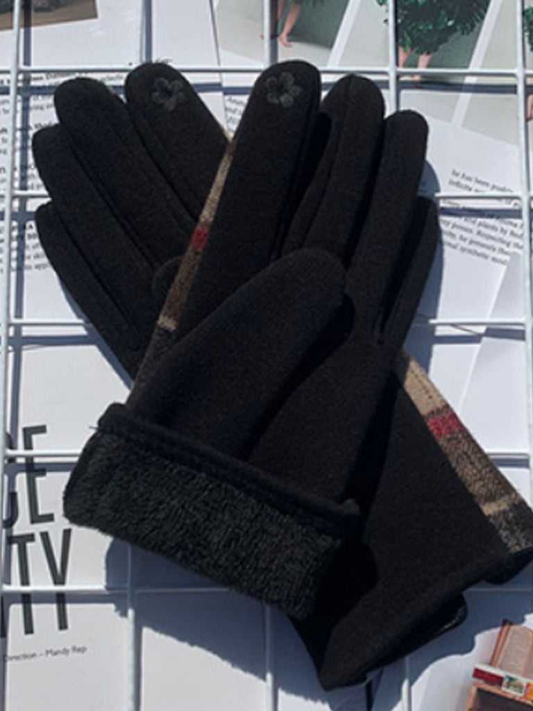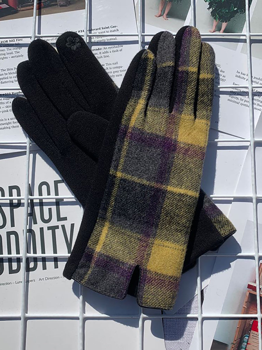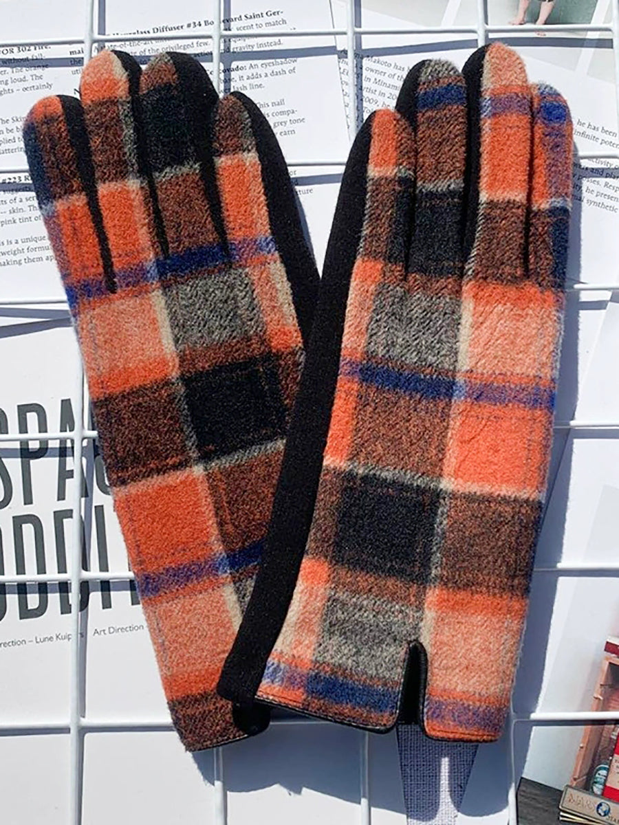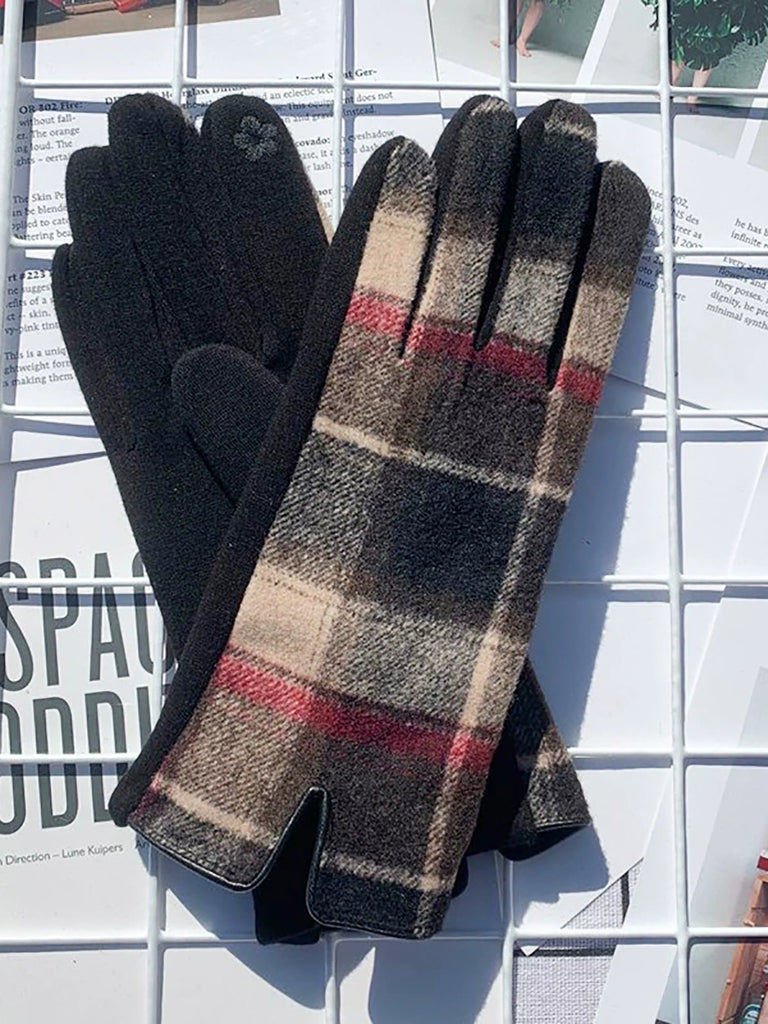 女士民族風格子保暖觸感騎乘手套