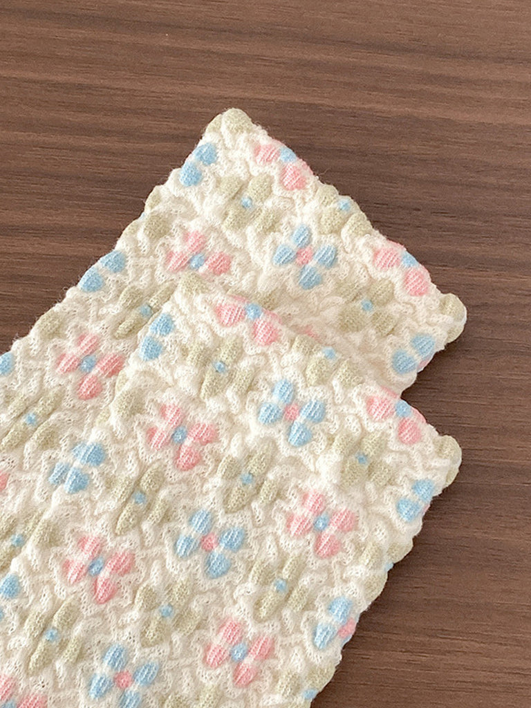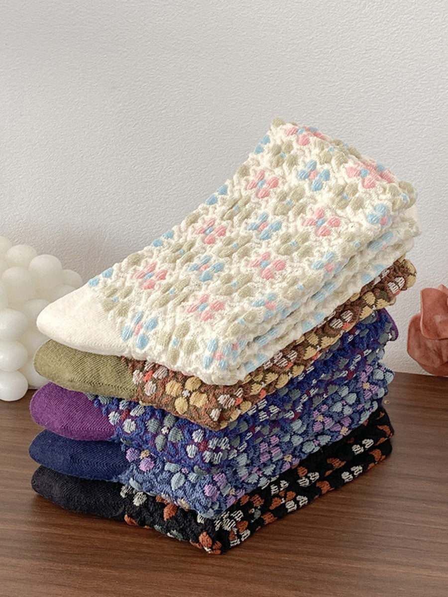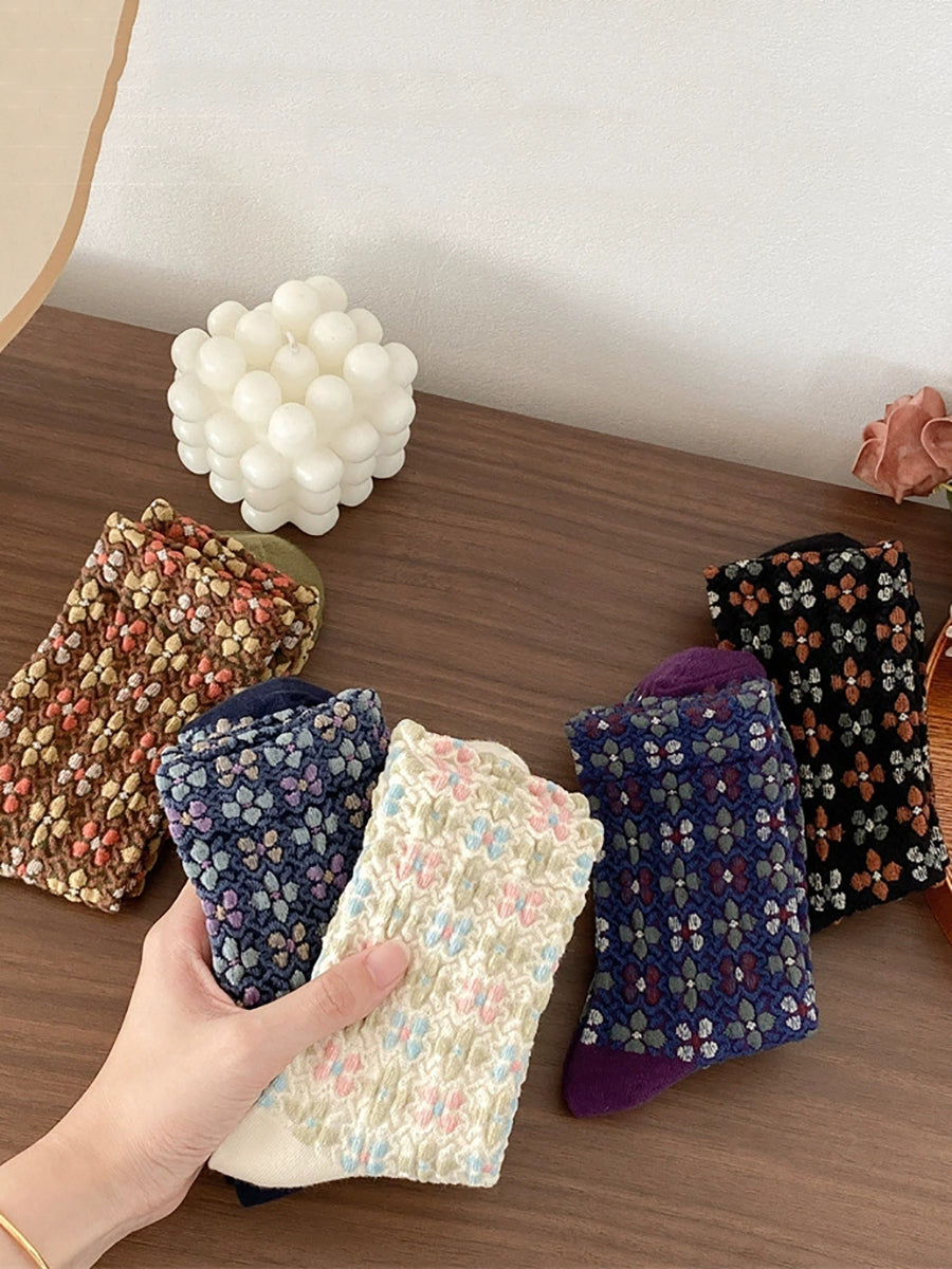 5雙女復古花卉壓花棉襪