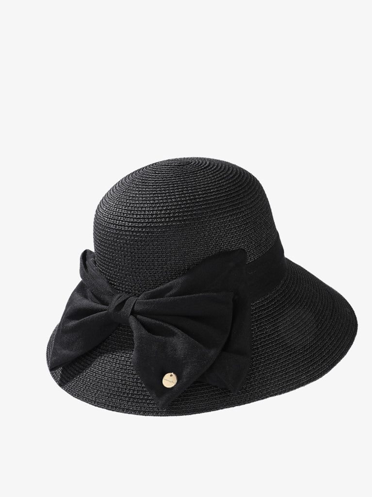 女士優雅蝴蝶結草編防曬帽