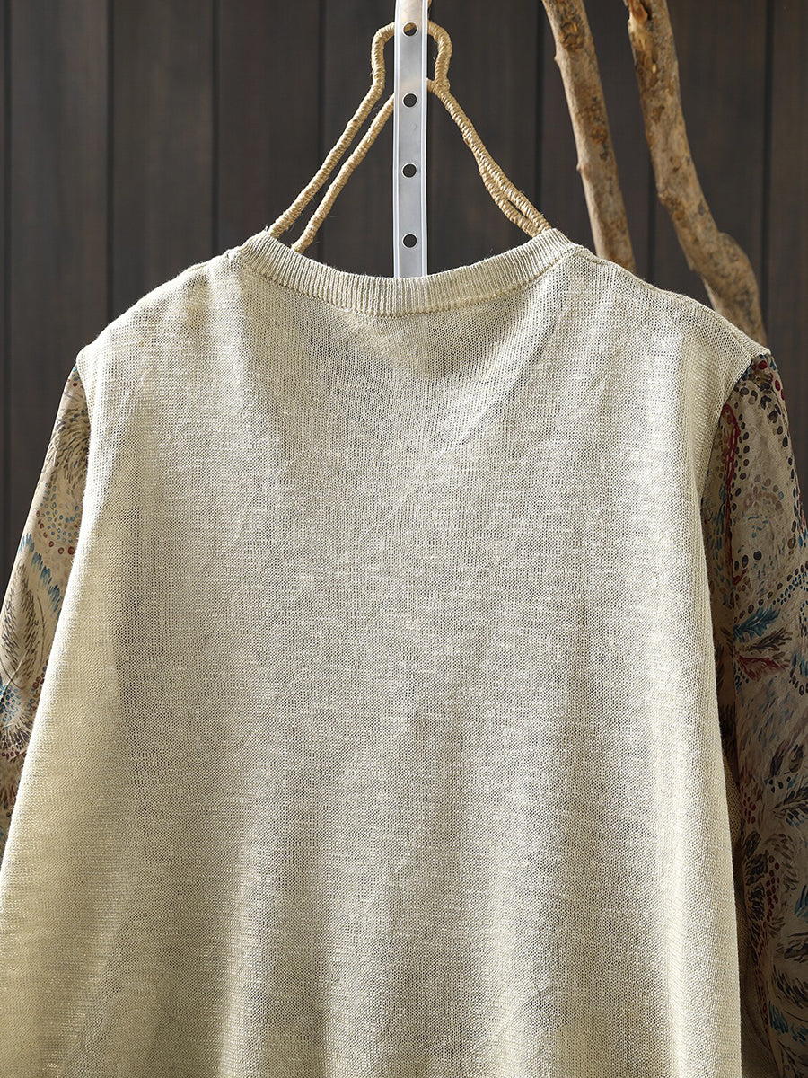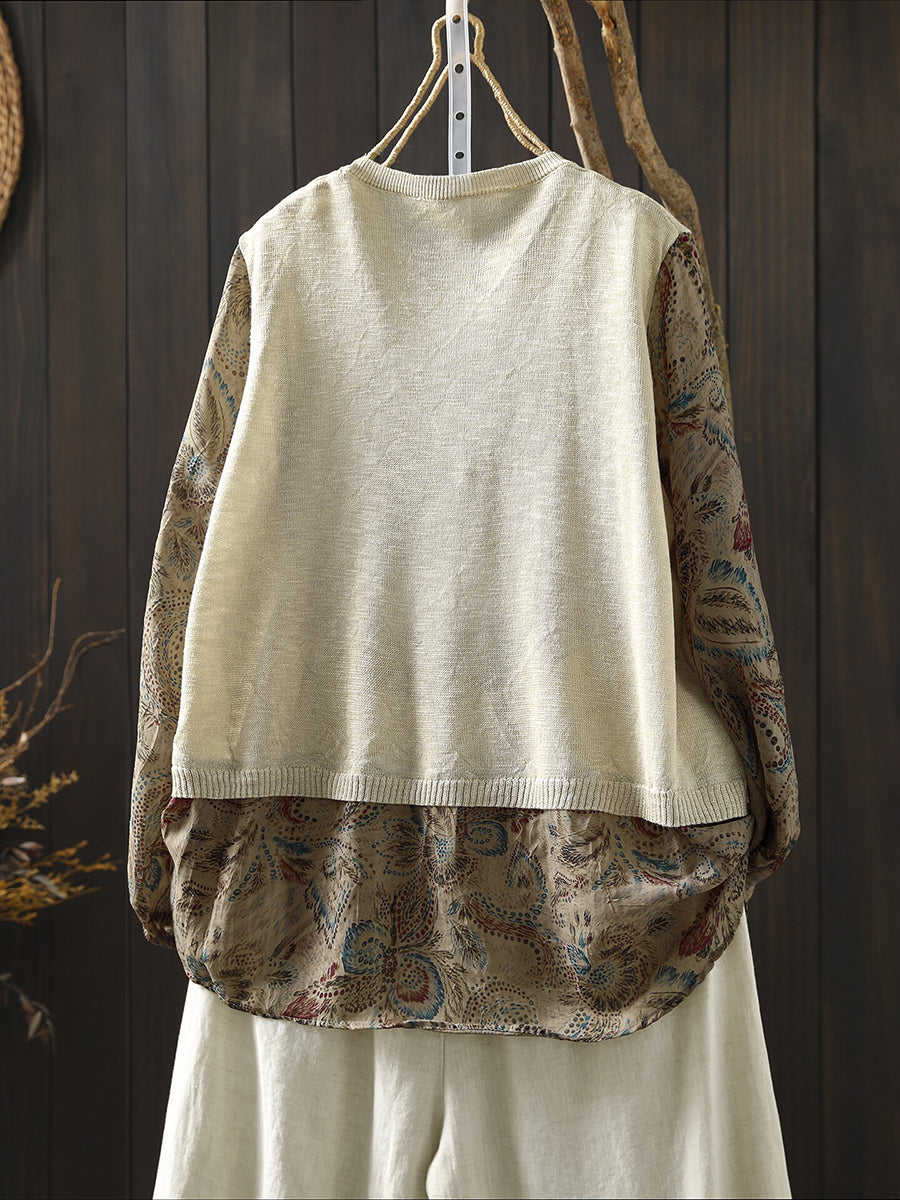 女士春季藝術風花卉拼接棉質襯衫