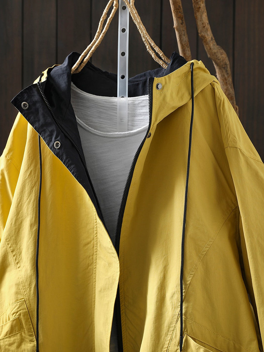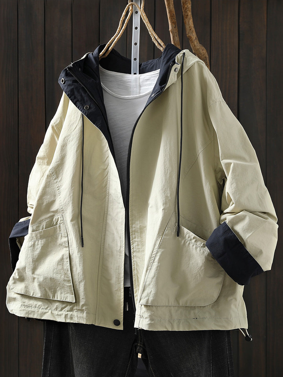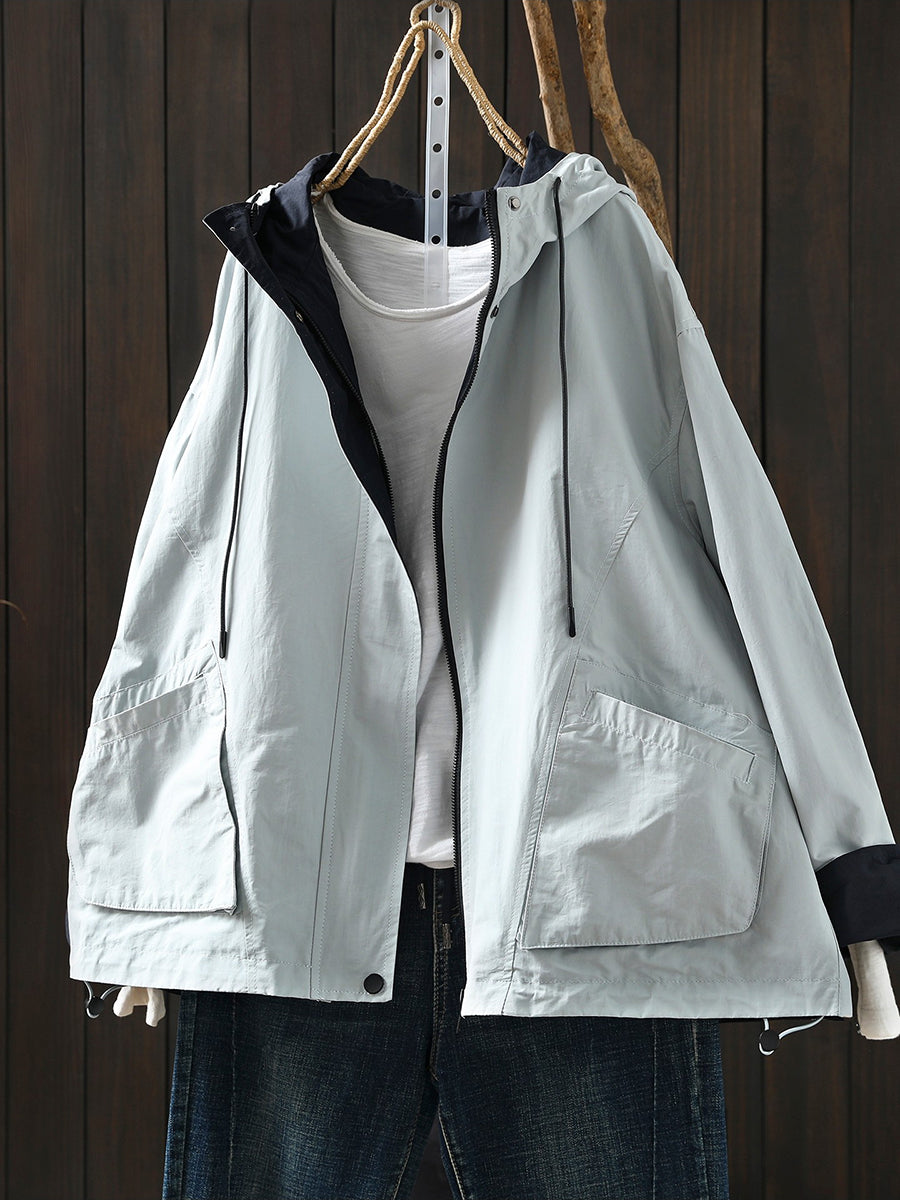 女士春季純色棉質連帽外套