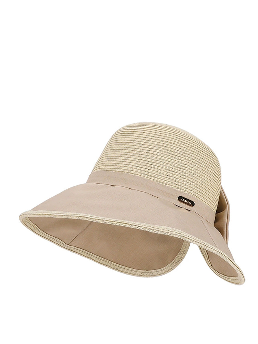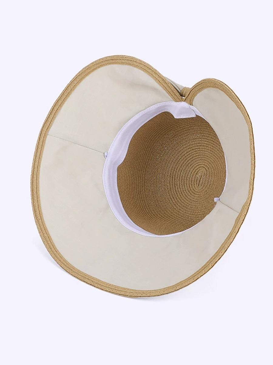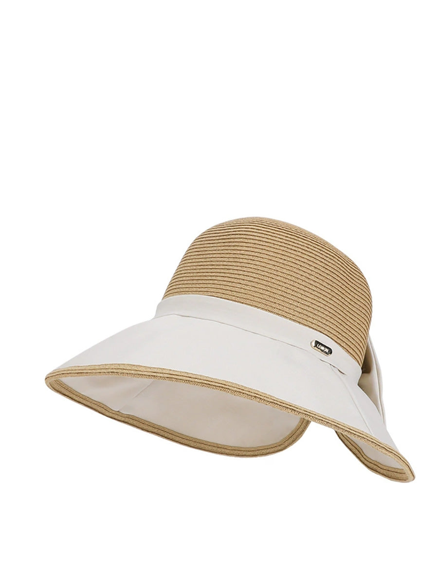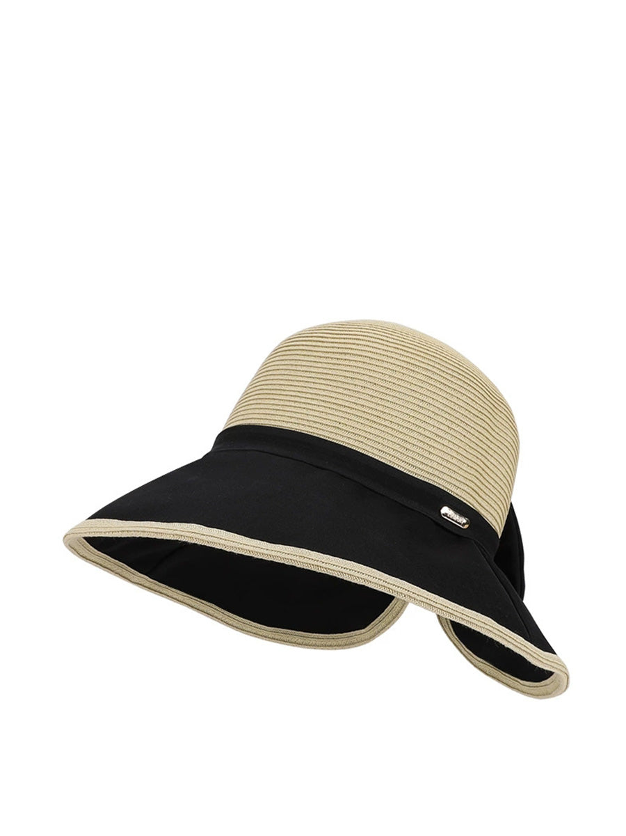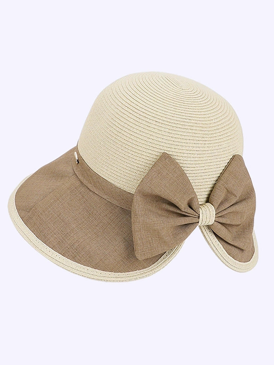 女士夏季撞色蝴蝶結防曬帽