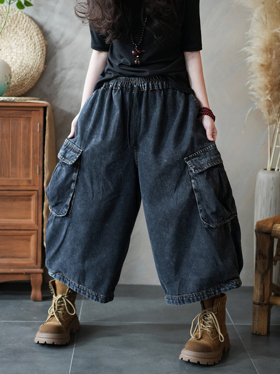女士夏季復古牛仔哈倫褲