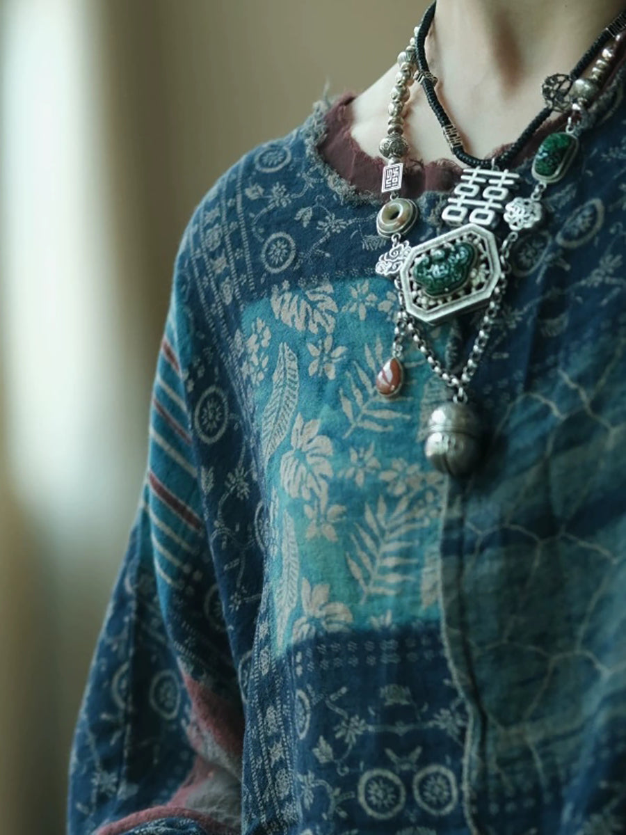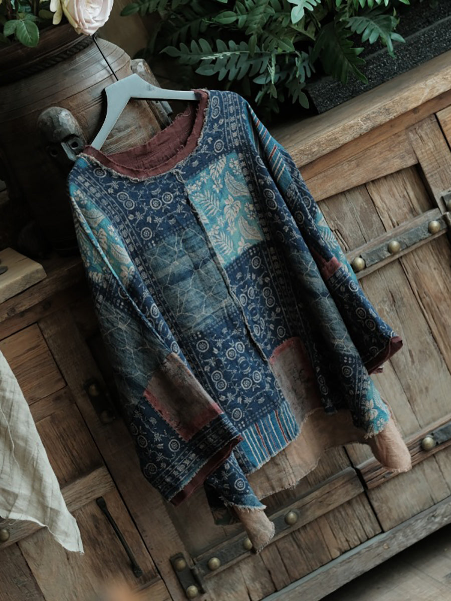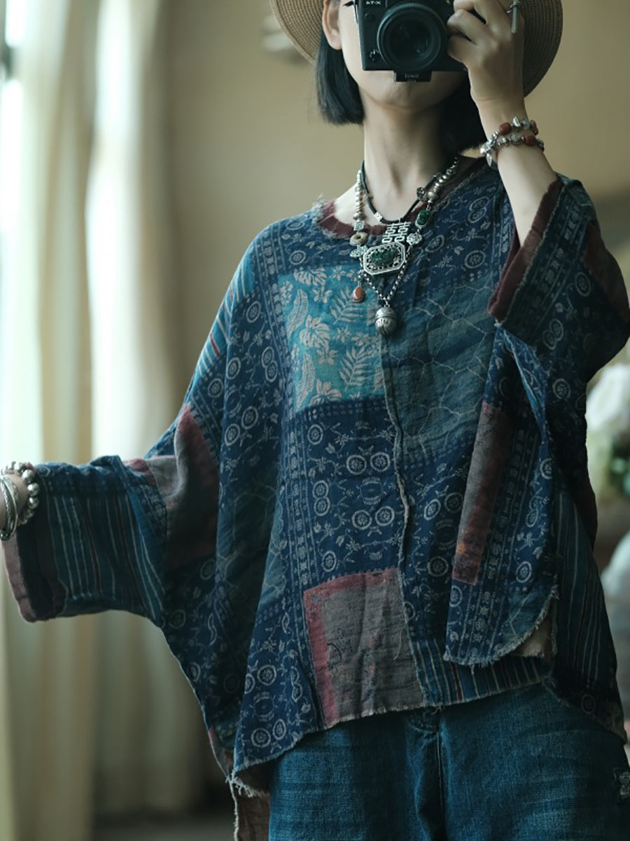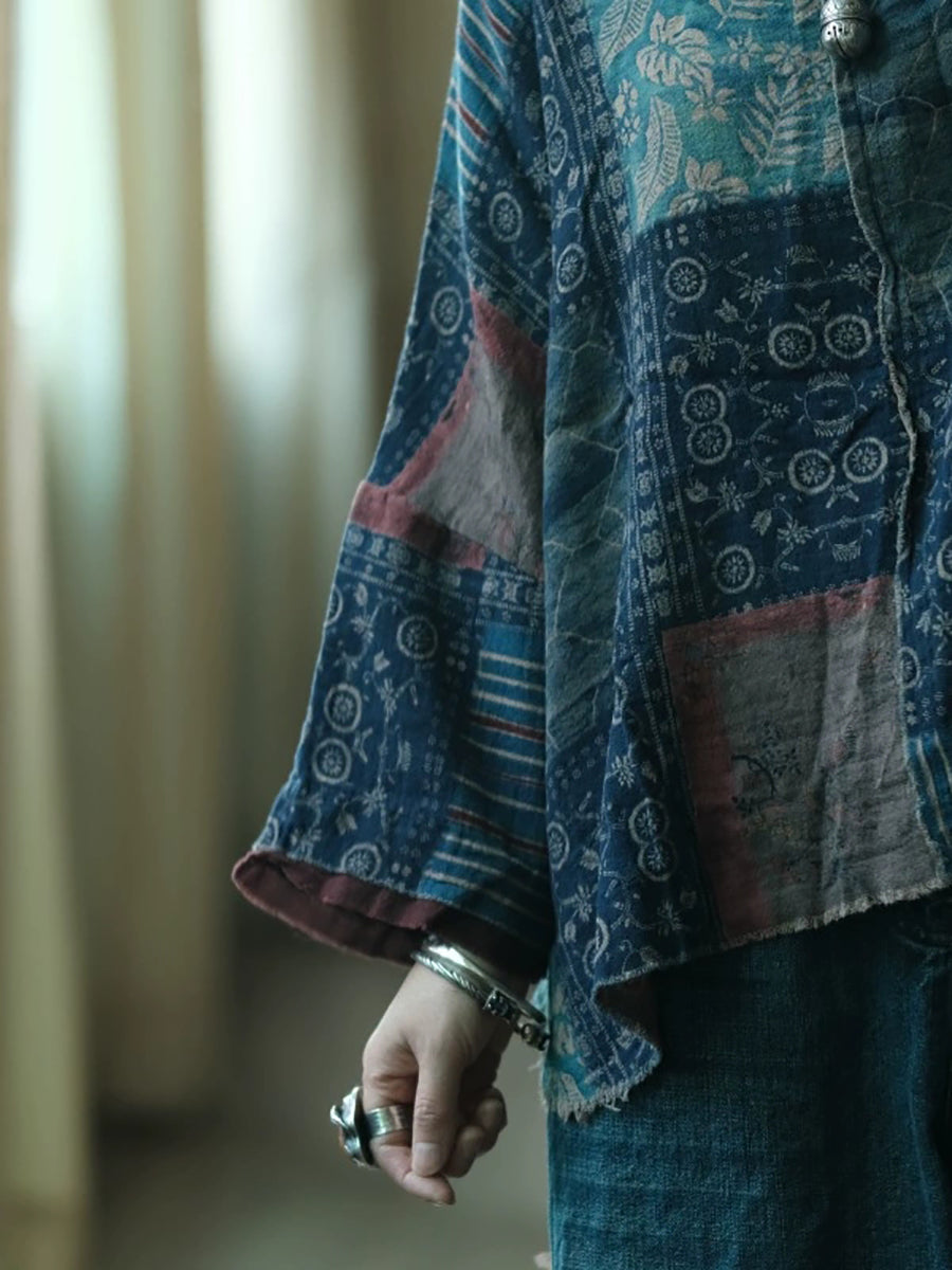 女士夏季復古拼接圓領棉質襯衫
