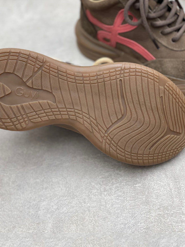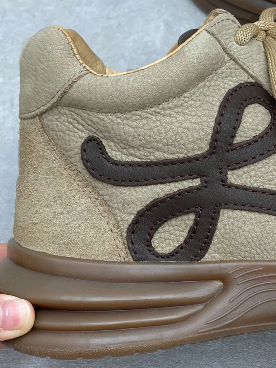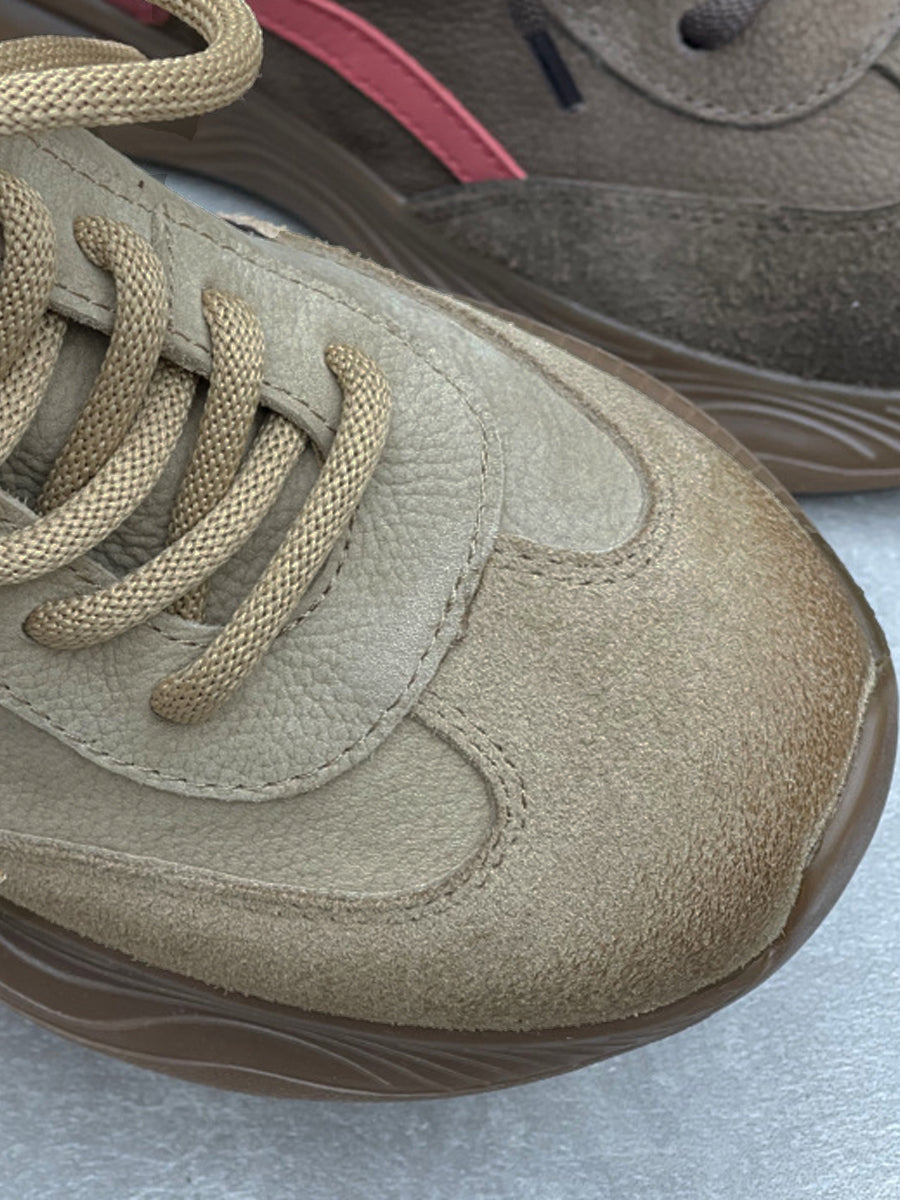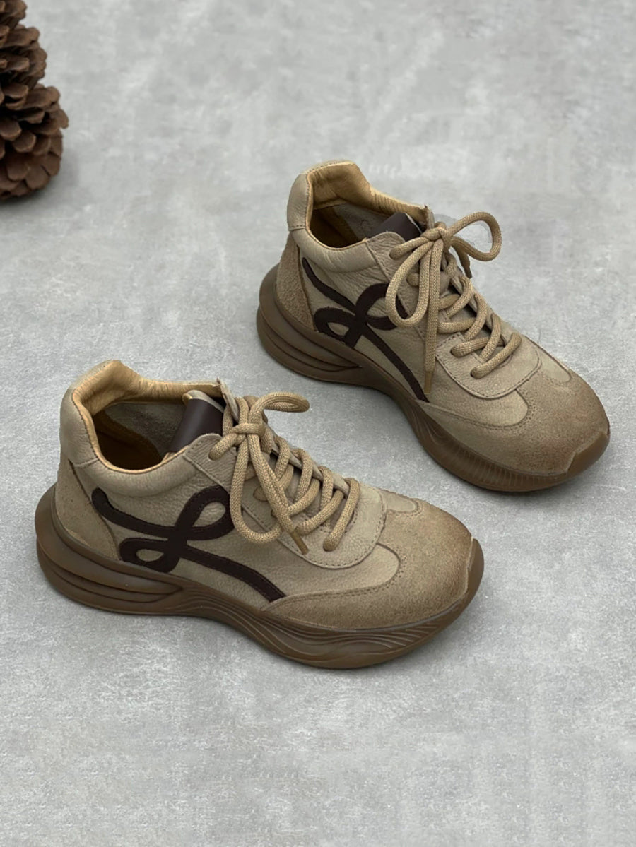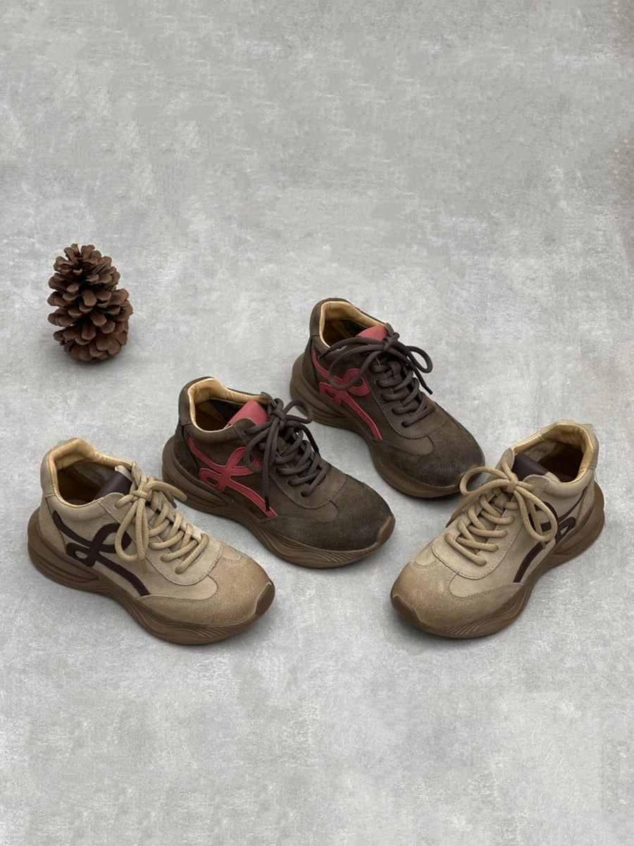 女士復古皮革拼接厚底鞋
