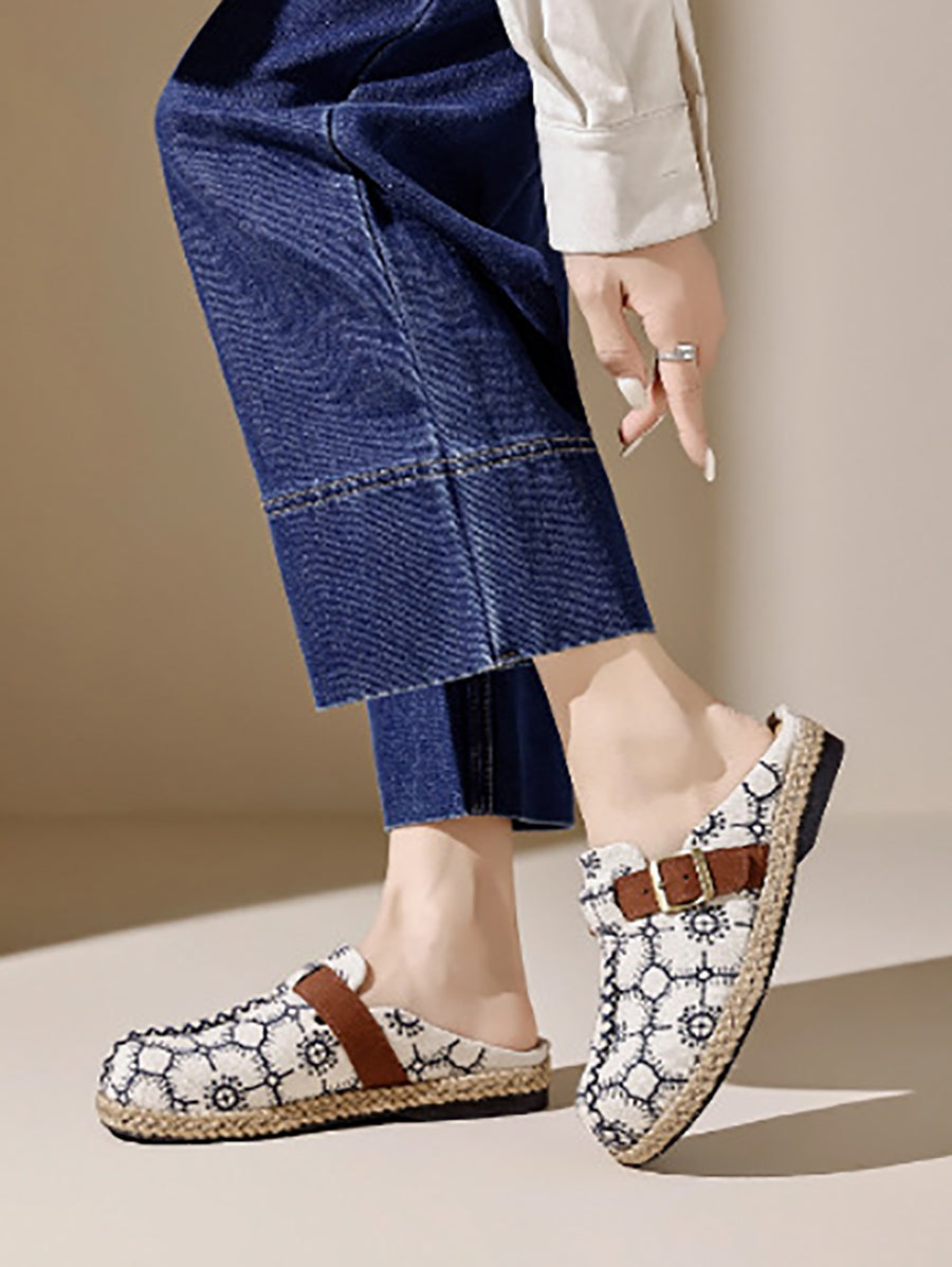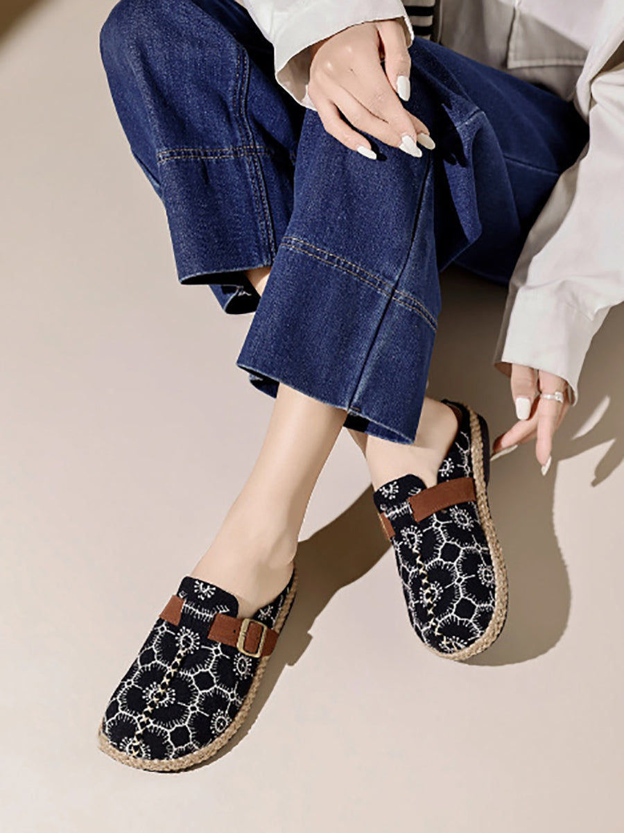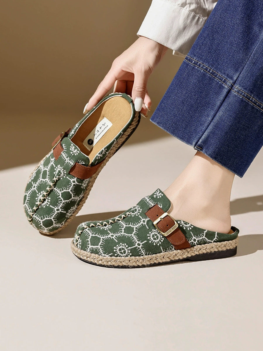 女士復古夏季帆布平底拖鞋