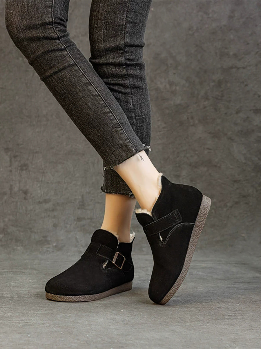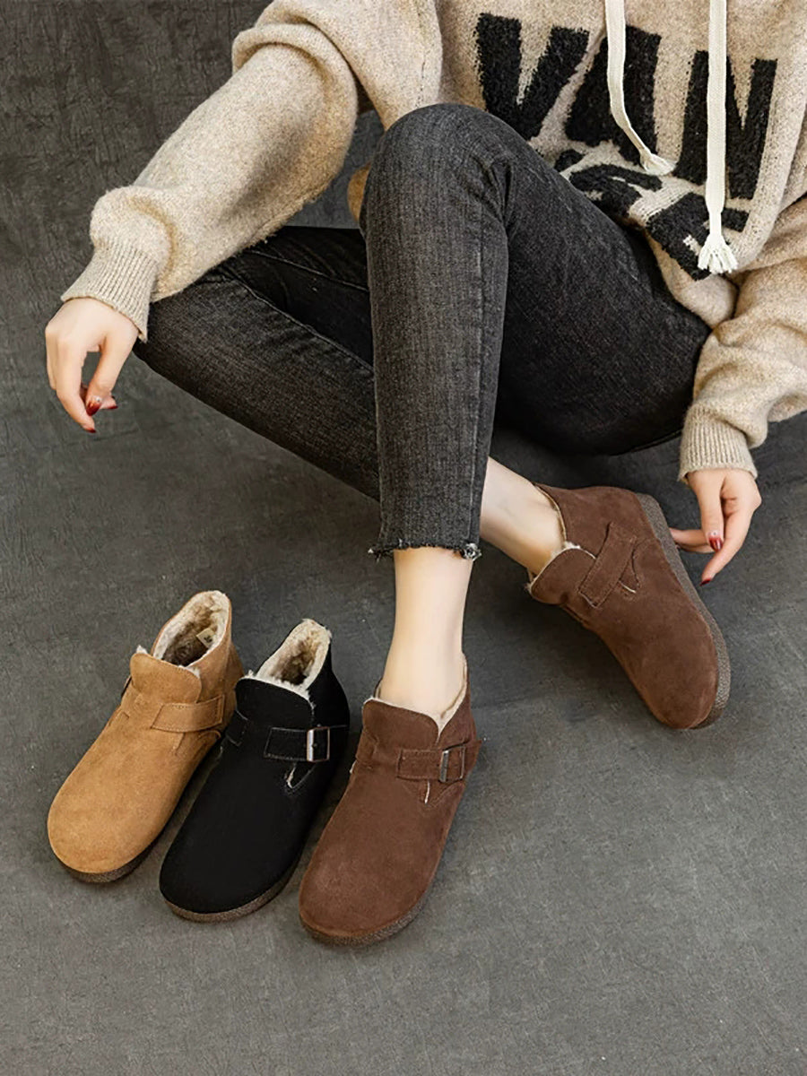 女士冬季真皮羊毛內襯鞋