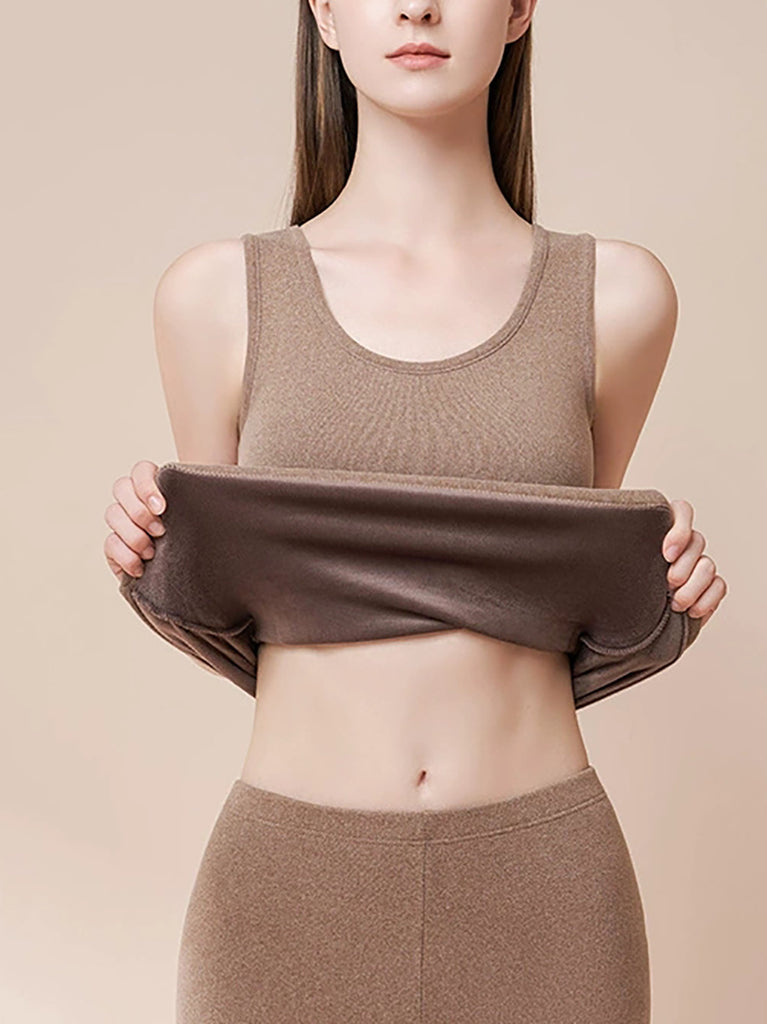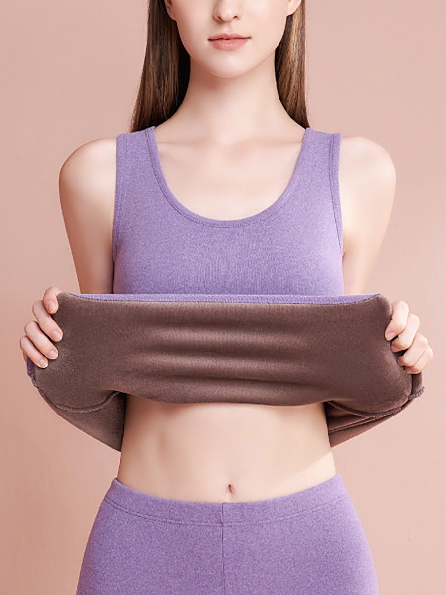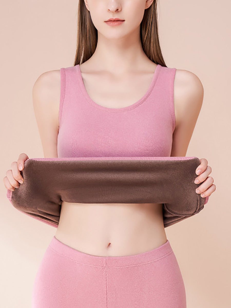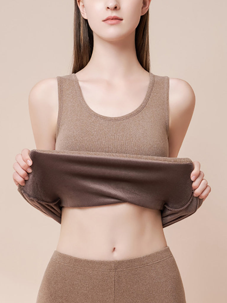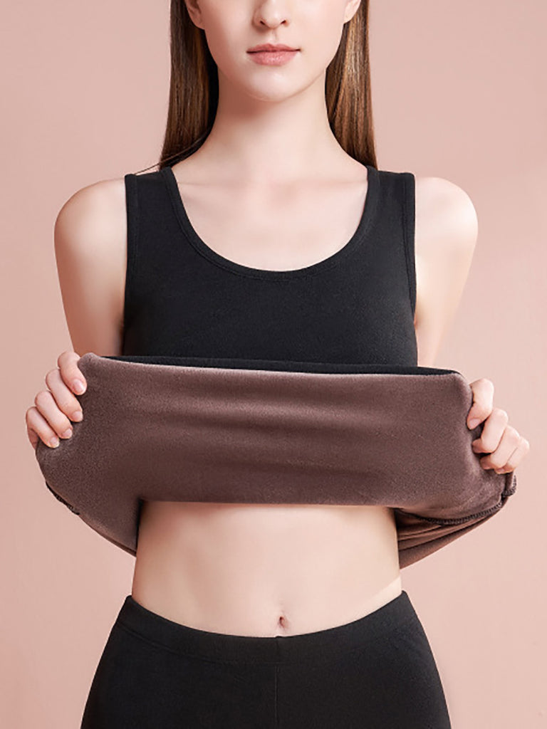 女士冬季保暖純色抓絨打底背心